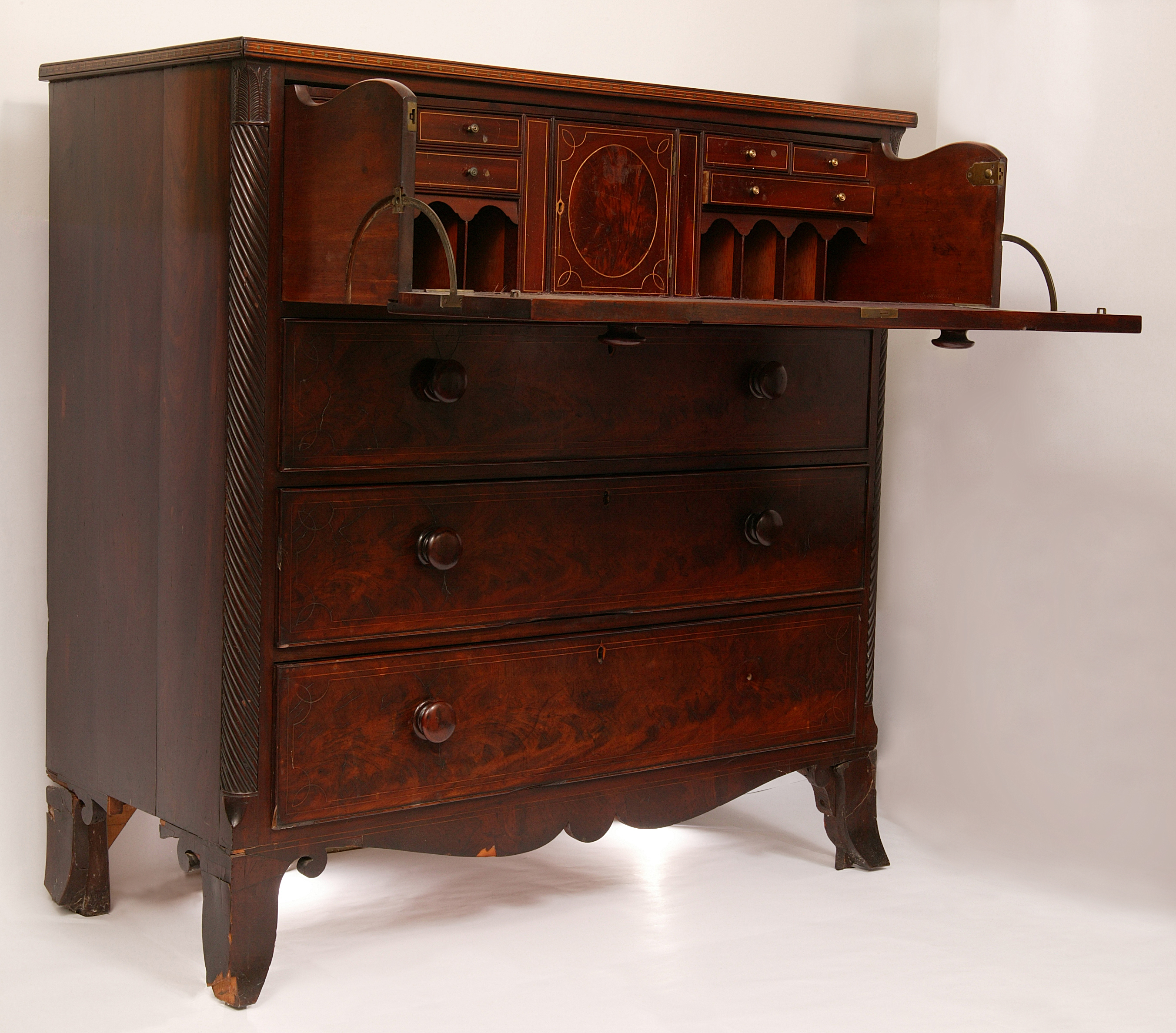 Butler's Desk belonged to Dr. Thomas McCulloch and made by his brother, George McCulloch Currently on display at McCulloch House Museum Material: wood Manufacturer: George McCulloch Original Owner: Thomas McCulloch Source: Geraldine Campbell, Halifax [purchase] 19800324 History: Butler's desk made by George McCulloch for his brother, Thomas McCulloch Condition: Veneer Cracked, missing in places, feet damaged, back right foot missing a bracket-shaped foot as of 09/18/85 NOTE: Items from Mrs. Campbell are considered to be McCulloch family possessions. Her husband's family is directly descended from Dr. T. McCulloch.