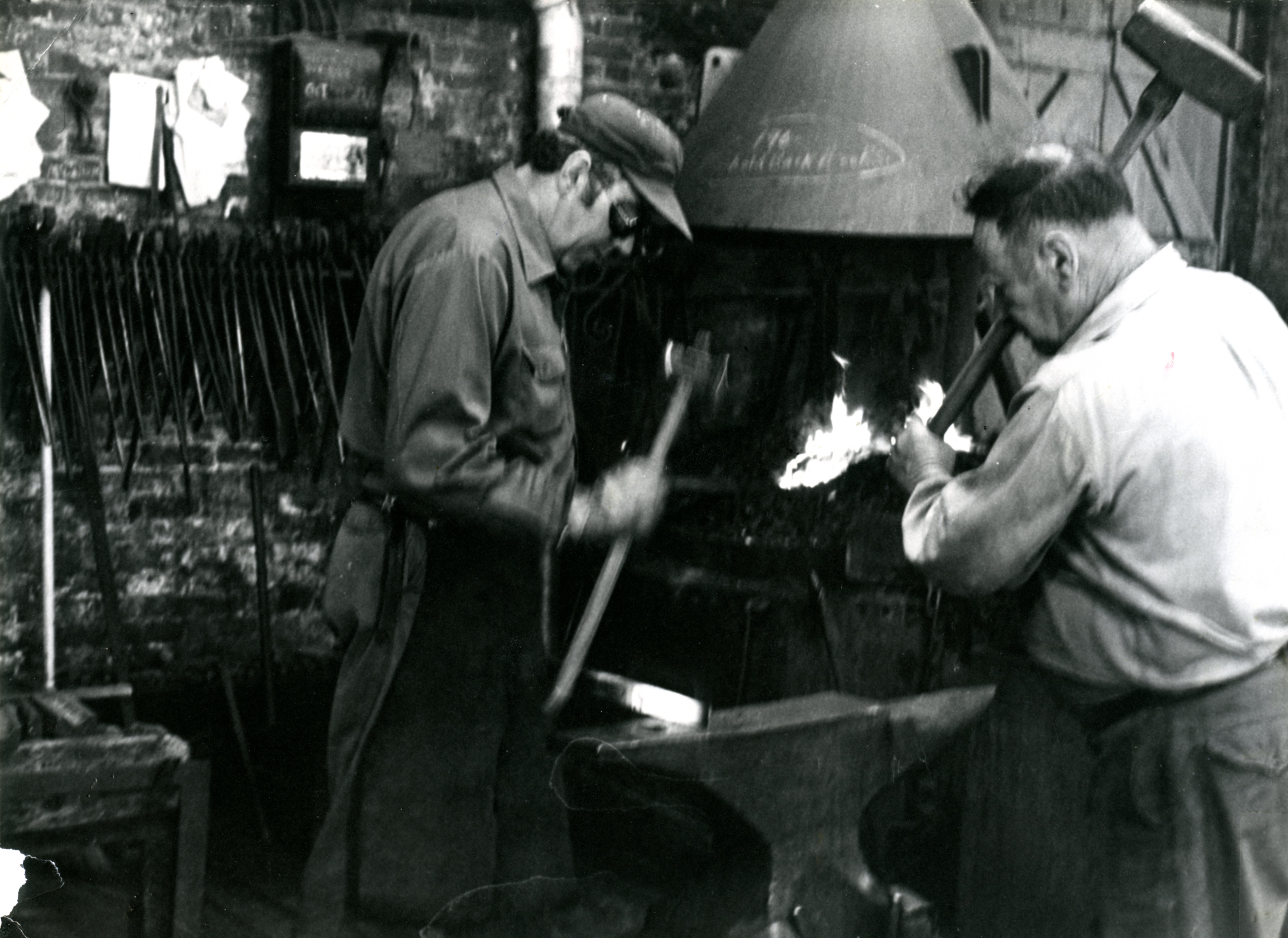 "Roland Heighton & Murray Harris. Blacksmith Shop, Pictou Foundry, Front St., about 1974."