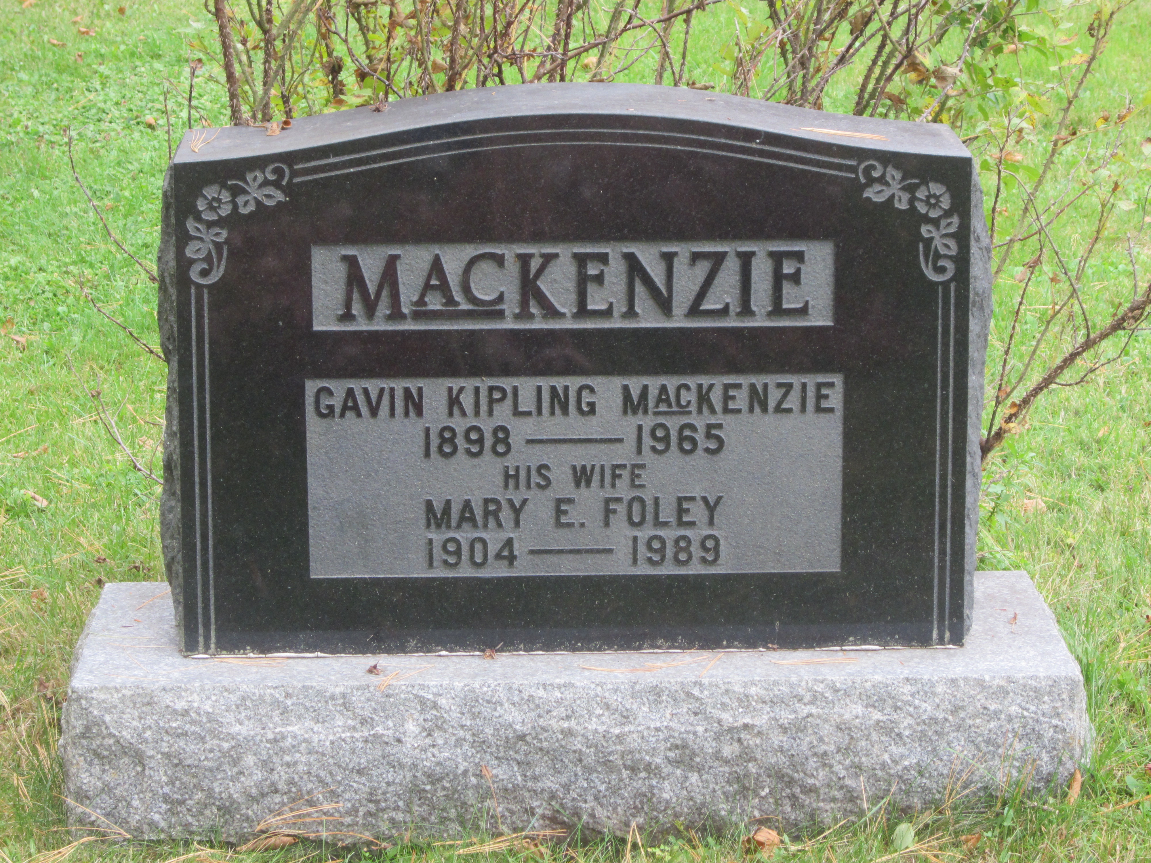 GAVEN KIPLING MACKENZIE 1898 - 1965 HIS WIFE MARY E. FOLEY 1904 - 1989.