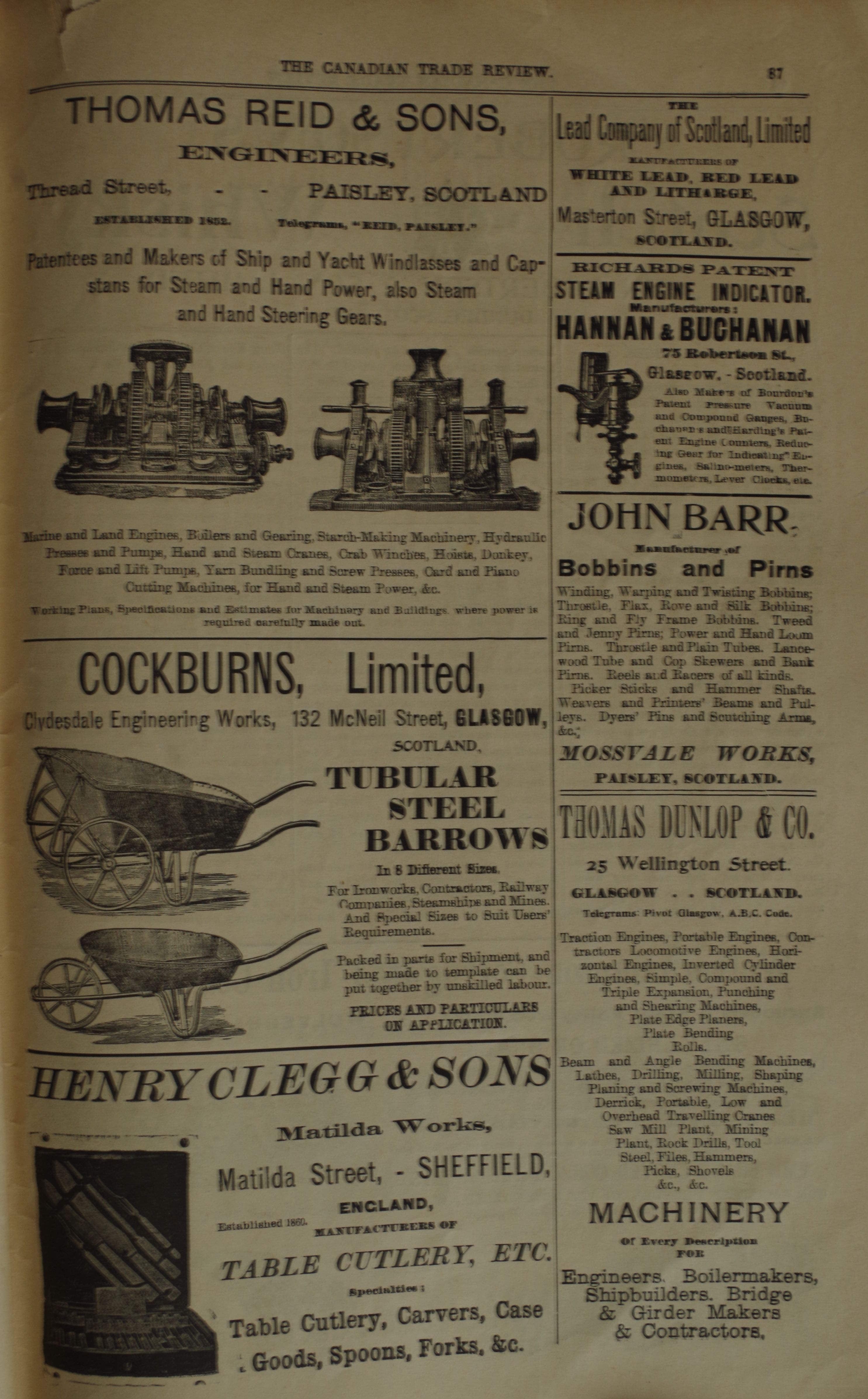 - Thomas Dunlop & Co., machinery for engineers, boilermakers, shipbuilders, bridge and girder makers, and contractors