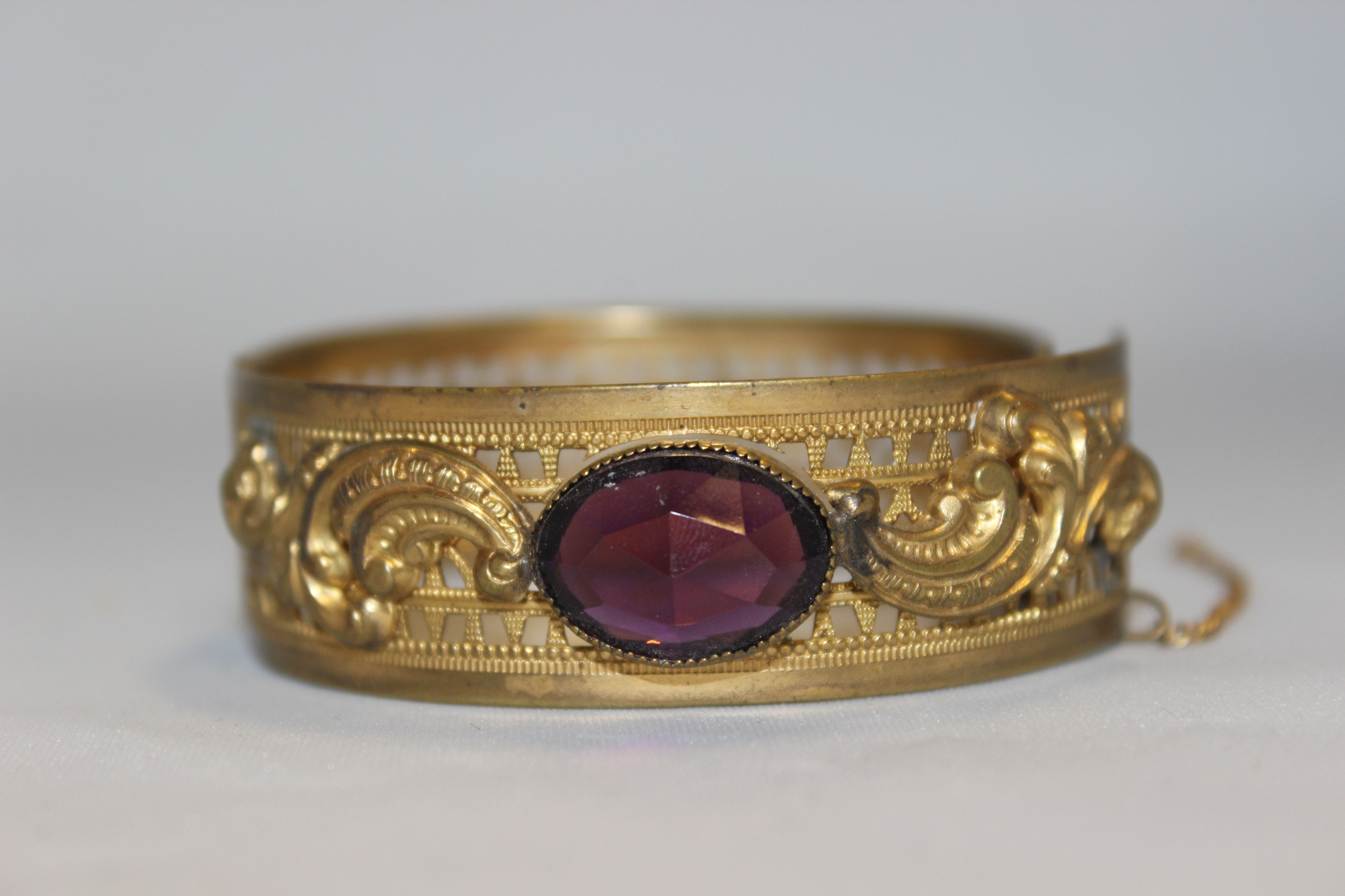 - lattice design with amethyst oval stone with filigree embossed on either side