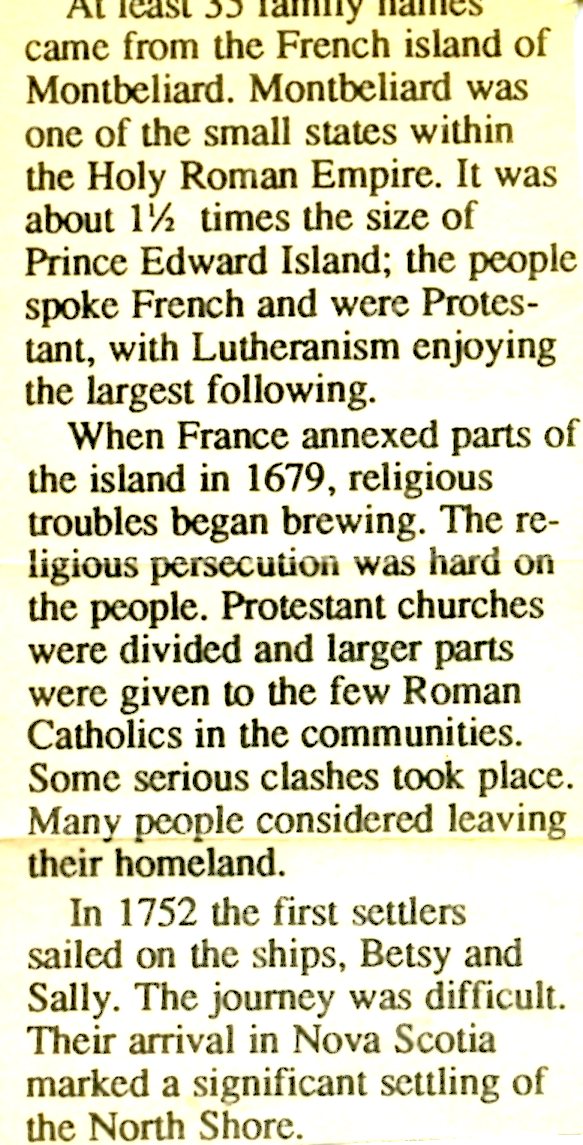 Newspaper clipping describing religous disputes resulting in people sailing to Nova Scotia, a new home