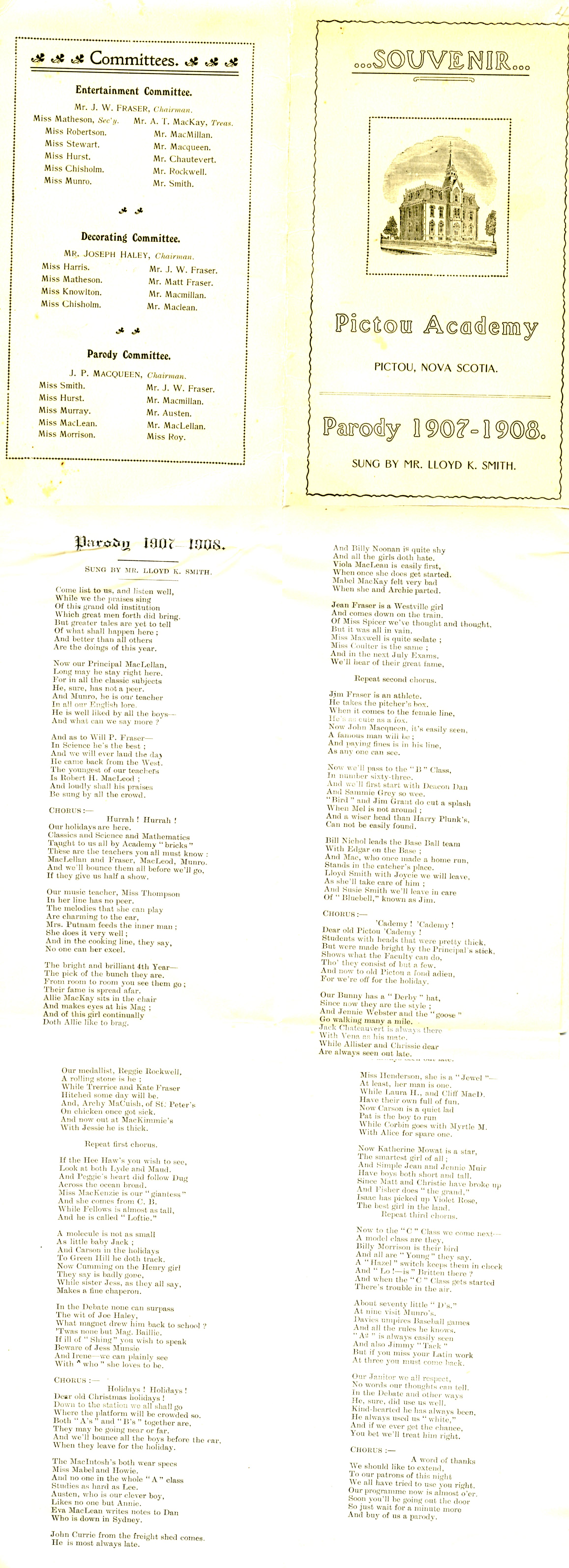 The Parody song for the 1907-1908 school year was sung by Mr. Lloyd K. Smith.