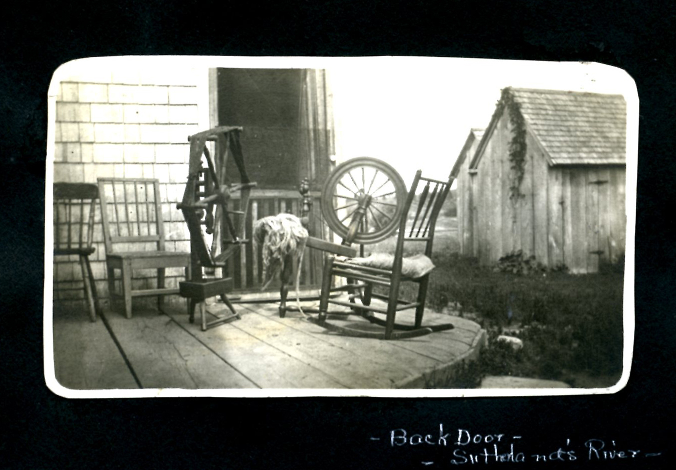 | Tags: | Sutherland's River, Spinning wheel, porch, 00-266, Anne McGregor Wark, Alexander McGregor, Isabella McKenzie McGregor, John McGregor, Lewis McGregor, Lydia McGregor Lawson, Wellington McGregor, Minnie McGregor, Sutherlands River, Pictou County |