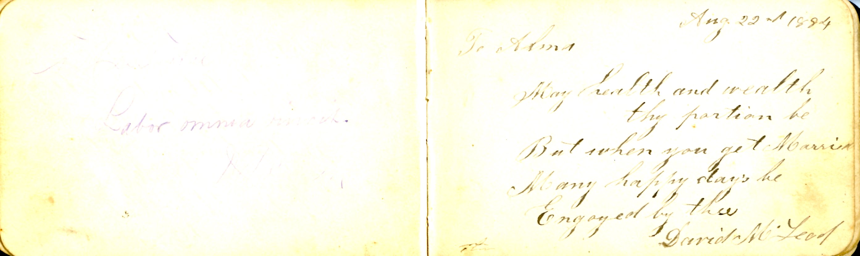 “May health and wealth thy fortune be, but when you get married many happy days he engaged by thee.”