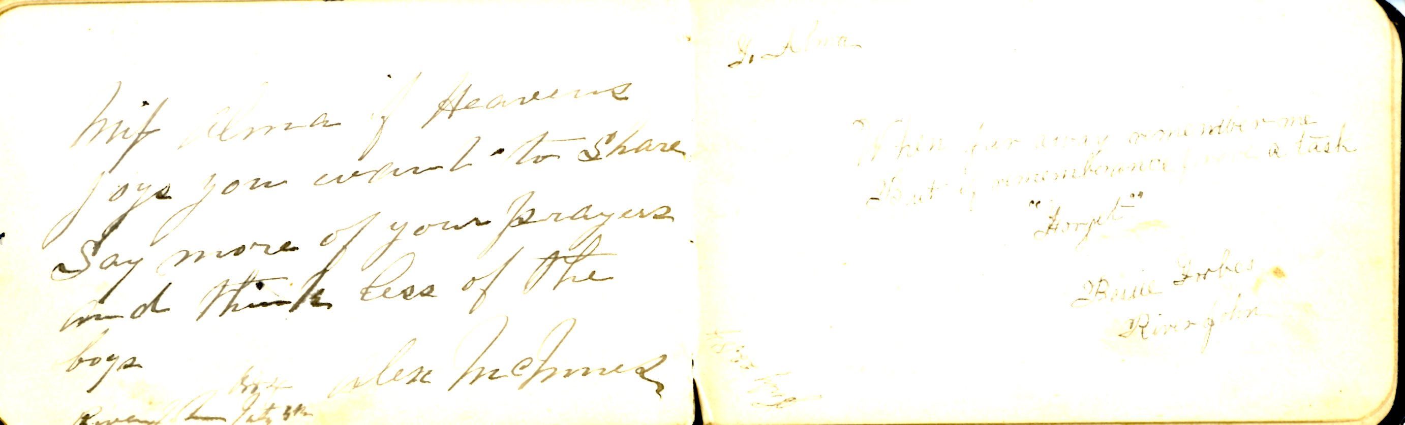 “My Alma,If heavens joys you want to share say more of your prayers and think less of the boys.”