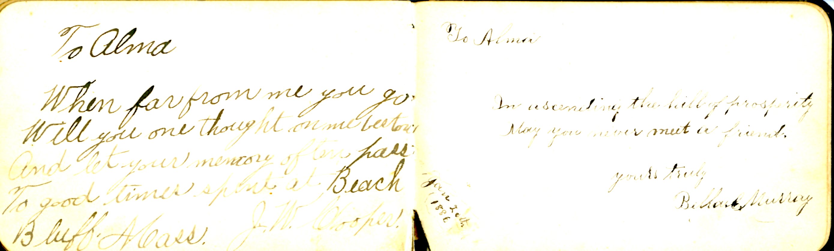 “When far from me you go, will you one thought on me _, and let your memory often pass to good time spent at Beach Bluff Meass.”