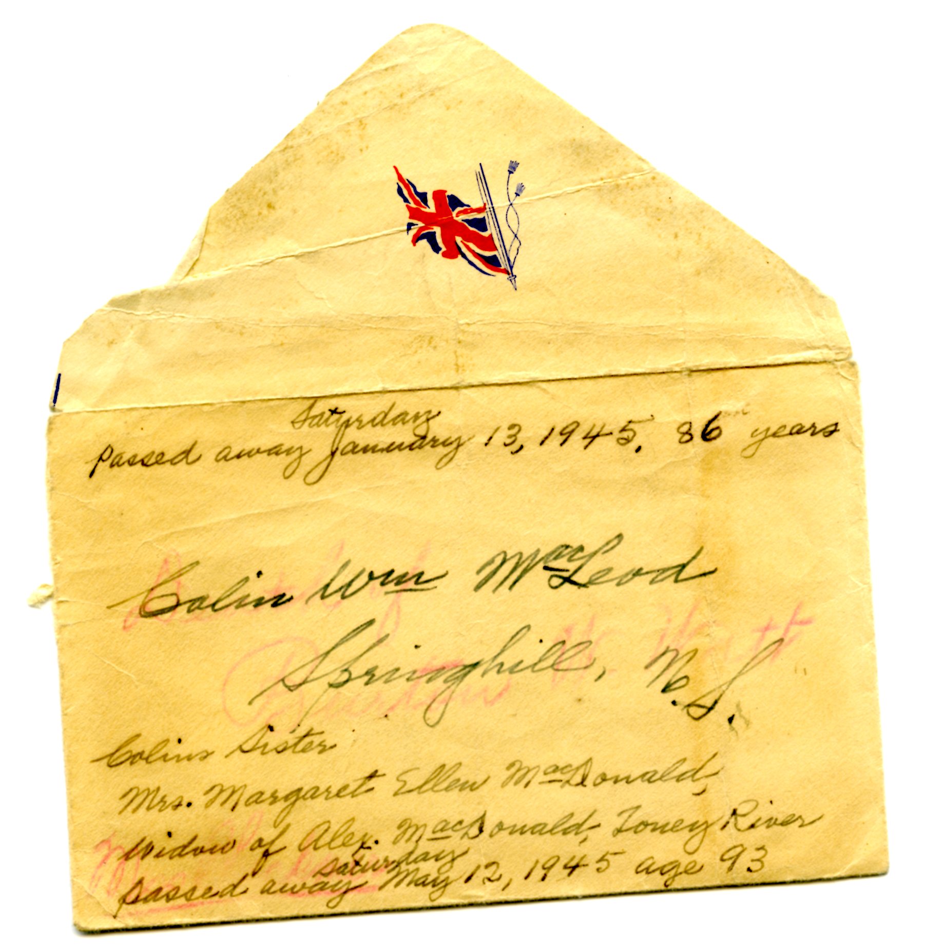 | Tags: | Calvin William MacLeod, Margaret Ellen MacDonald, Alexander MacDonald, Toney River, MacDonald, MacLeod, envelope |
