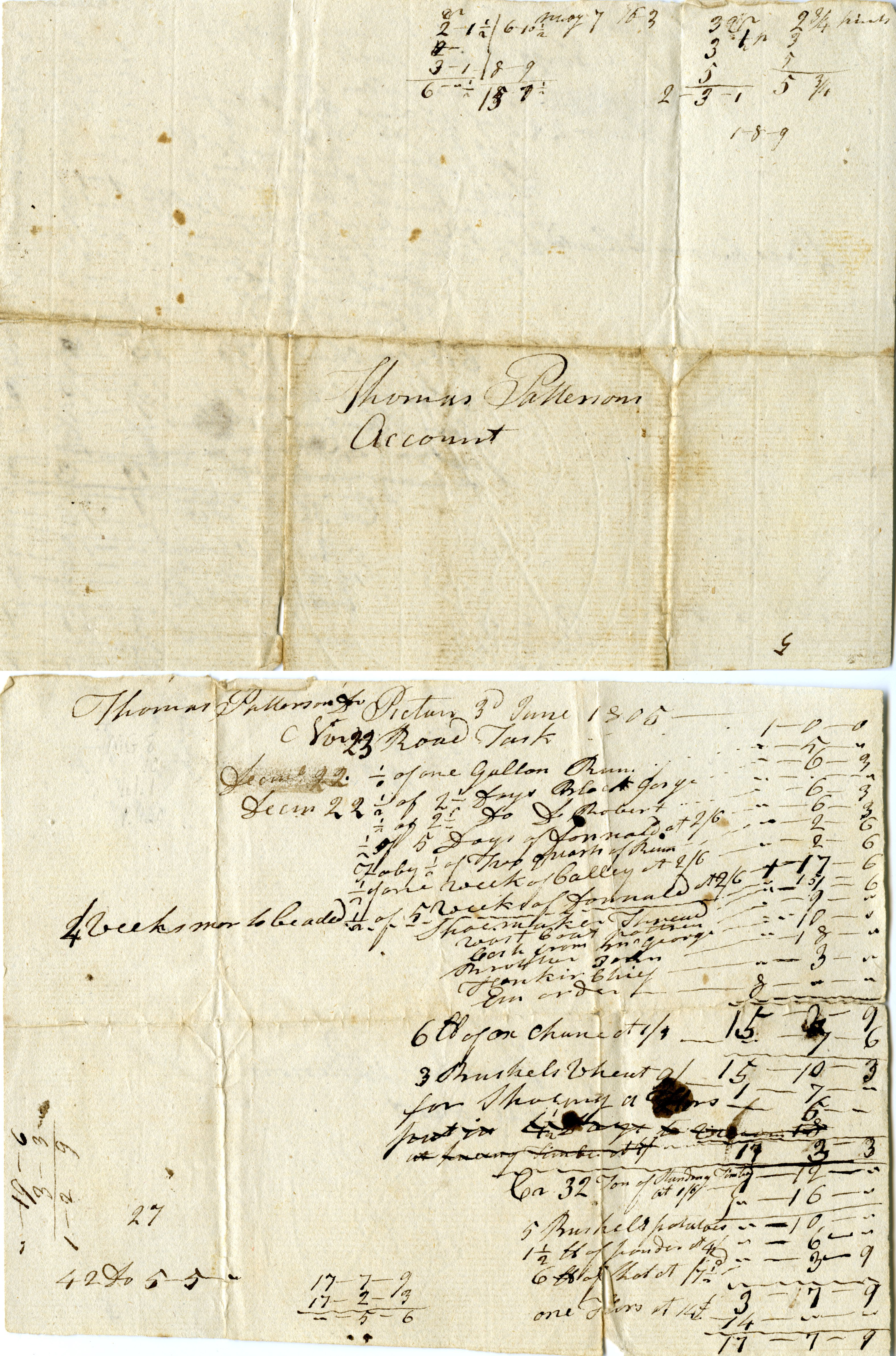 Details of Thomas Patterson's account in Pictou from June 1805. Part of the Patterson Papers.