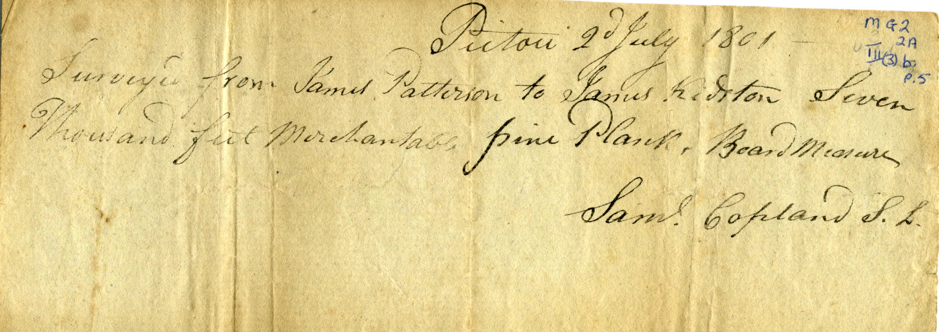 Surveyed from James Patterson to James Kidston Seven thousand fut merchantable pine plank, board measure.