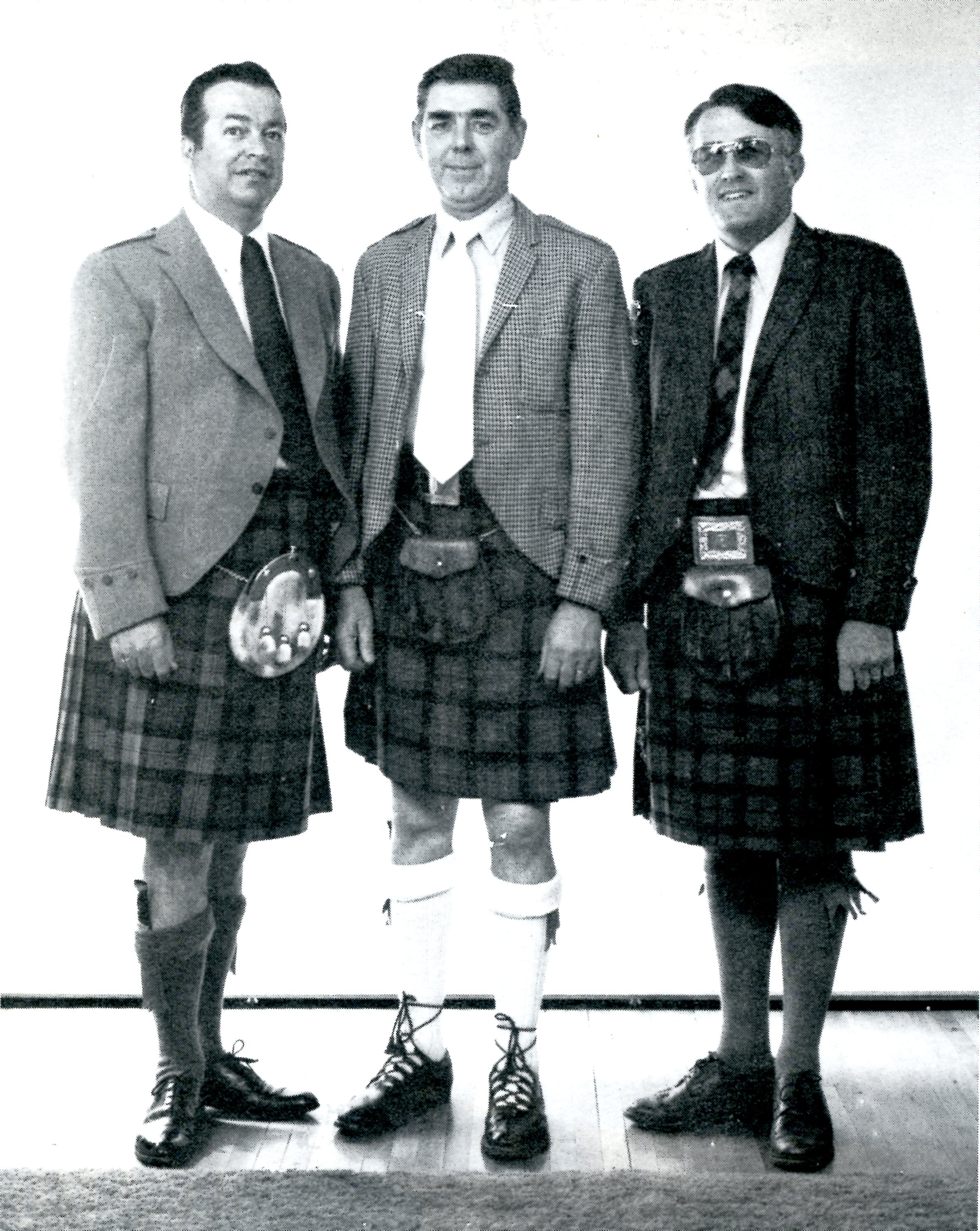 Left to right: John MacIsaac, Co-Chairman; Major D. Stallard, C.D., Pipe Band Chairman; Lloyd MacKay, Chairman.