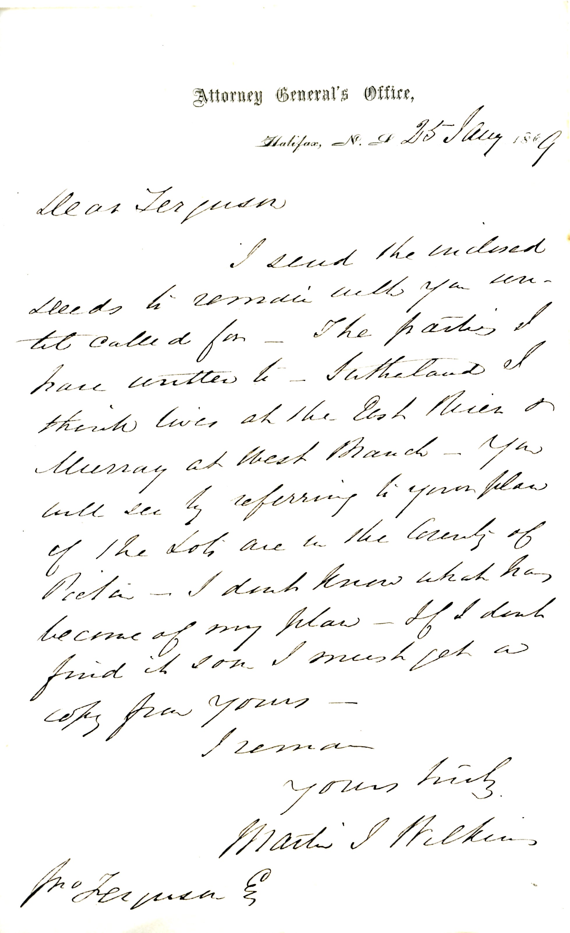 Addressed to a Mr. Ferguson, Esq., dated Halifax, N.S., 25 January 1869
