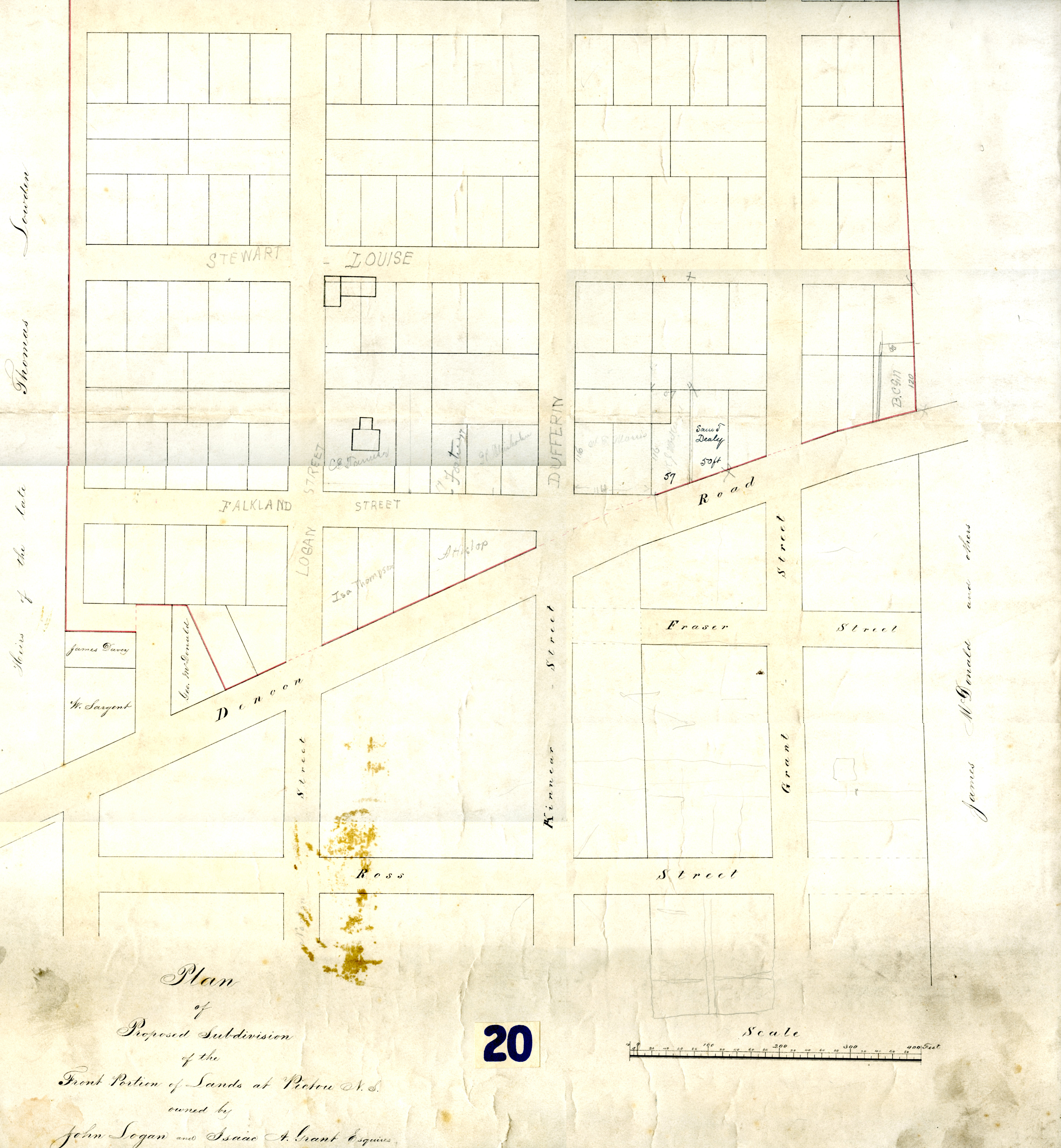 Plan for the division of land of John Logan and Isaac A. Grant
