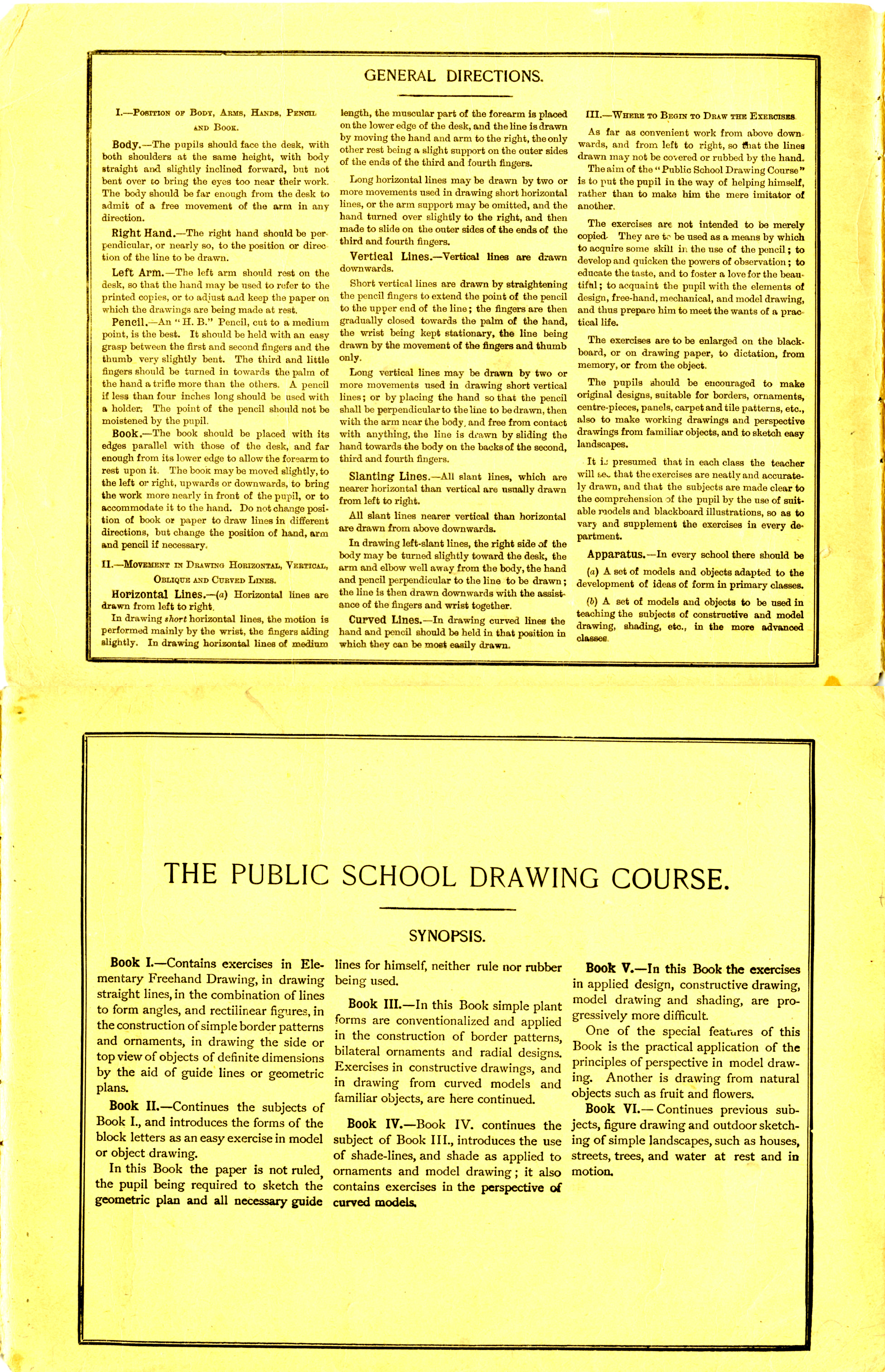 Directions and synopsis of the drawing school course taught in public schools. Book belonging to Thomas Fraser.