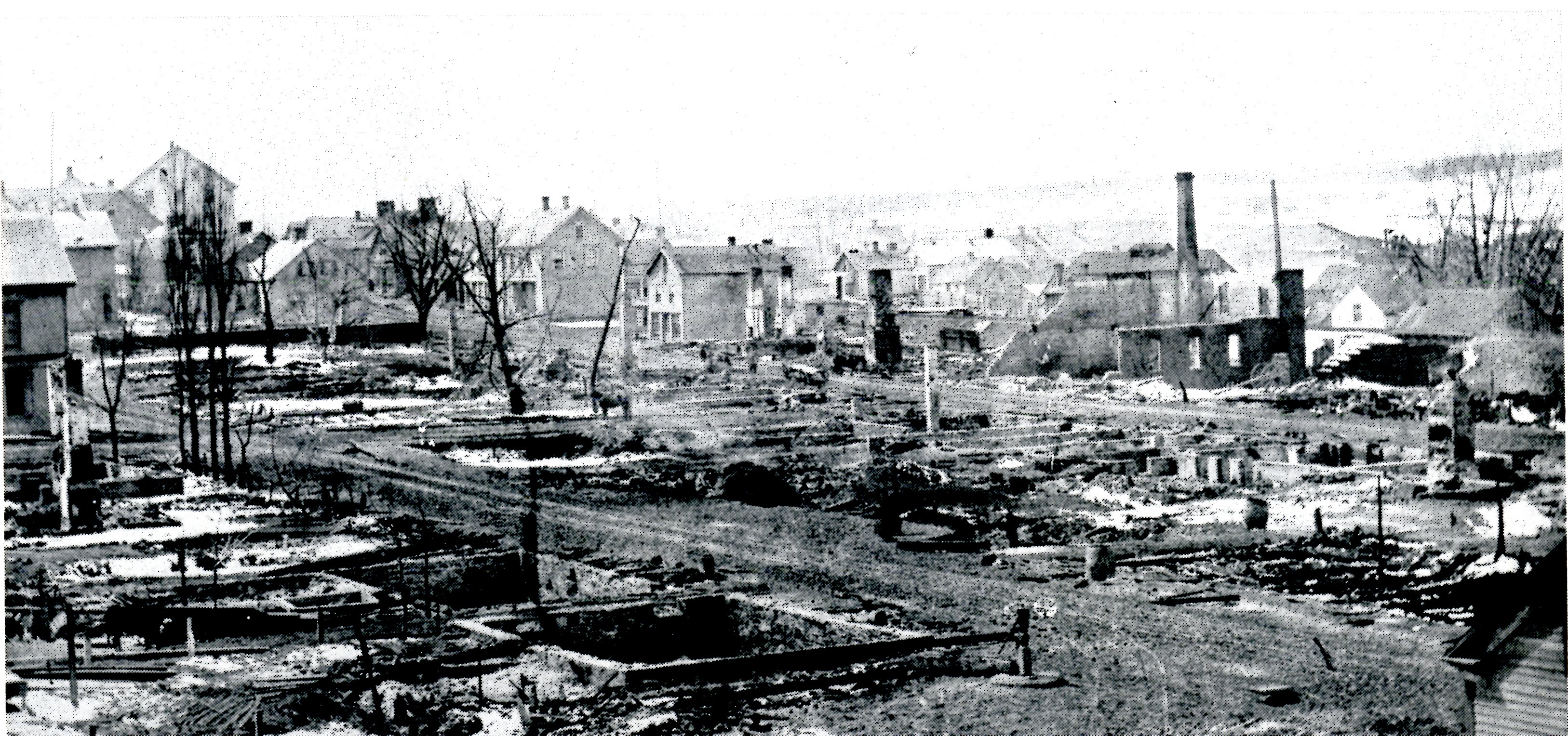 Aftermath of the Sunday morning fire that destroyed much of the New Glasgow business district on April 19, 1874.