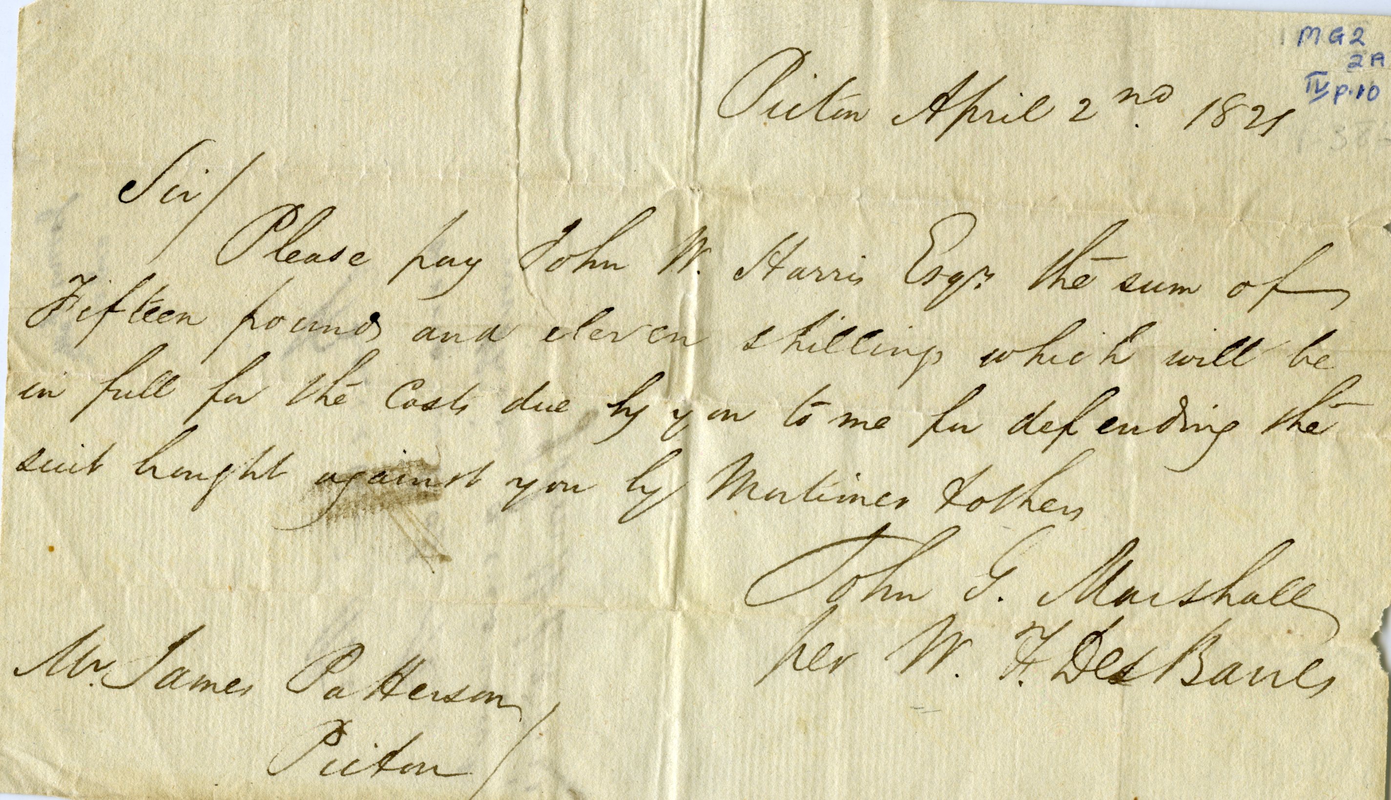 | Tags: | James Patterson, Patterson, Patterson Papers, Marshall, Pictou, note |