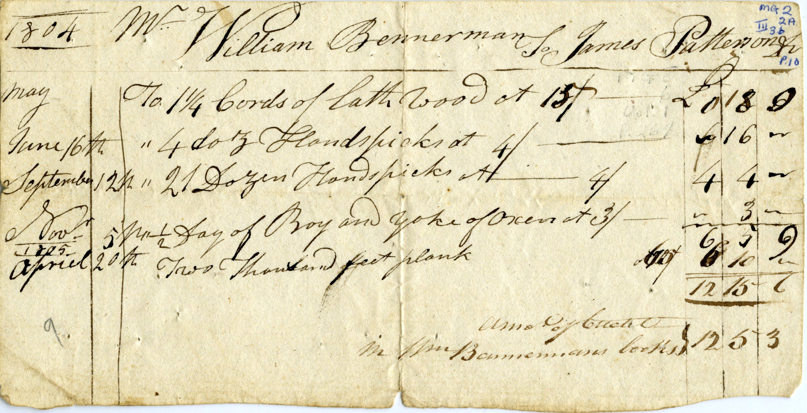 Account between James Patterson and William Bannerman/Bennerman, dated 1804