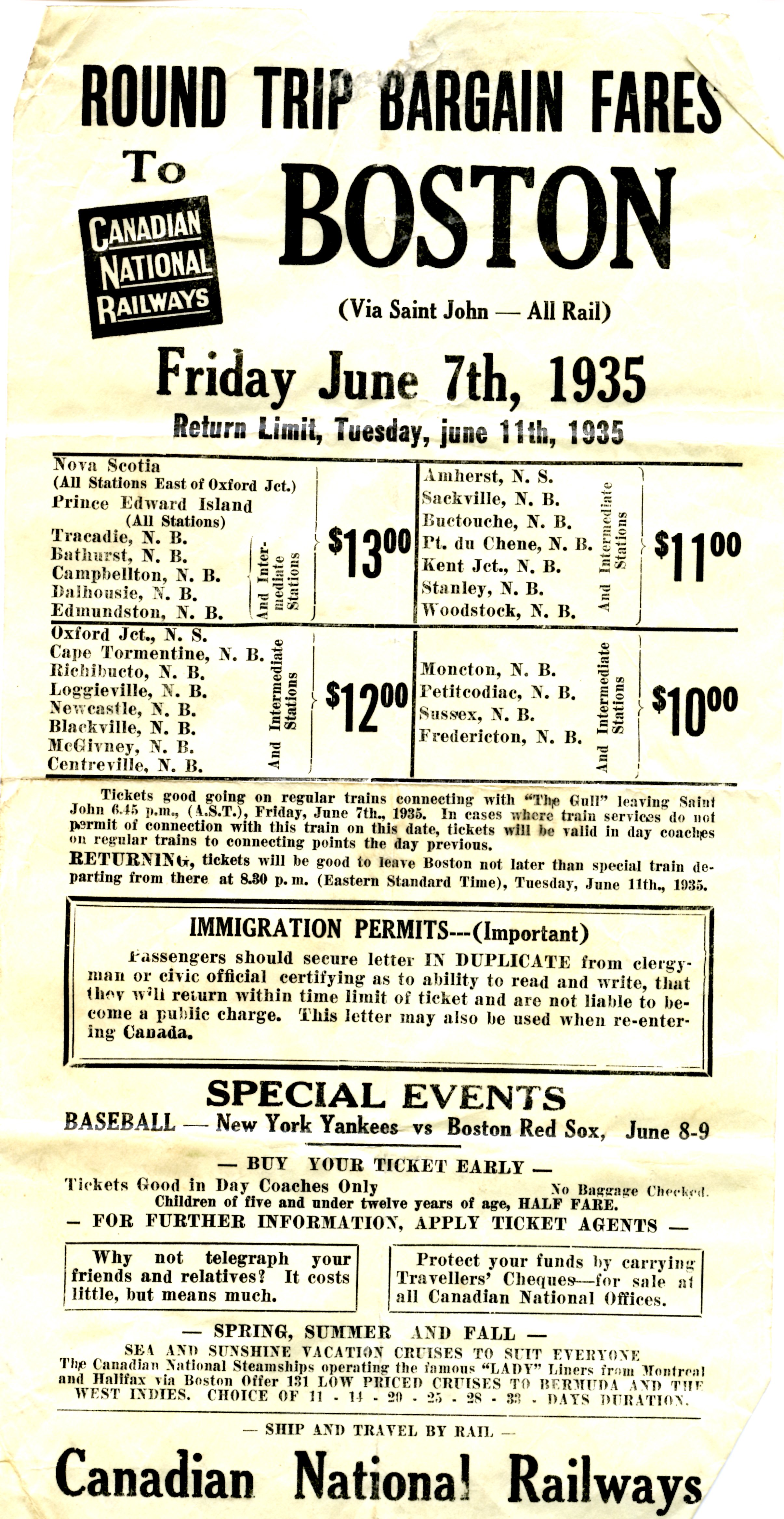 Special package to see the New York Yankees and the Boston Red Sox play in June 1935