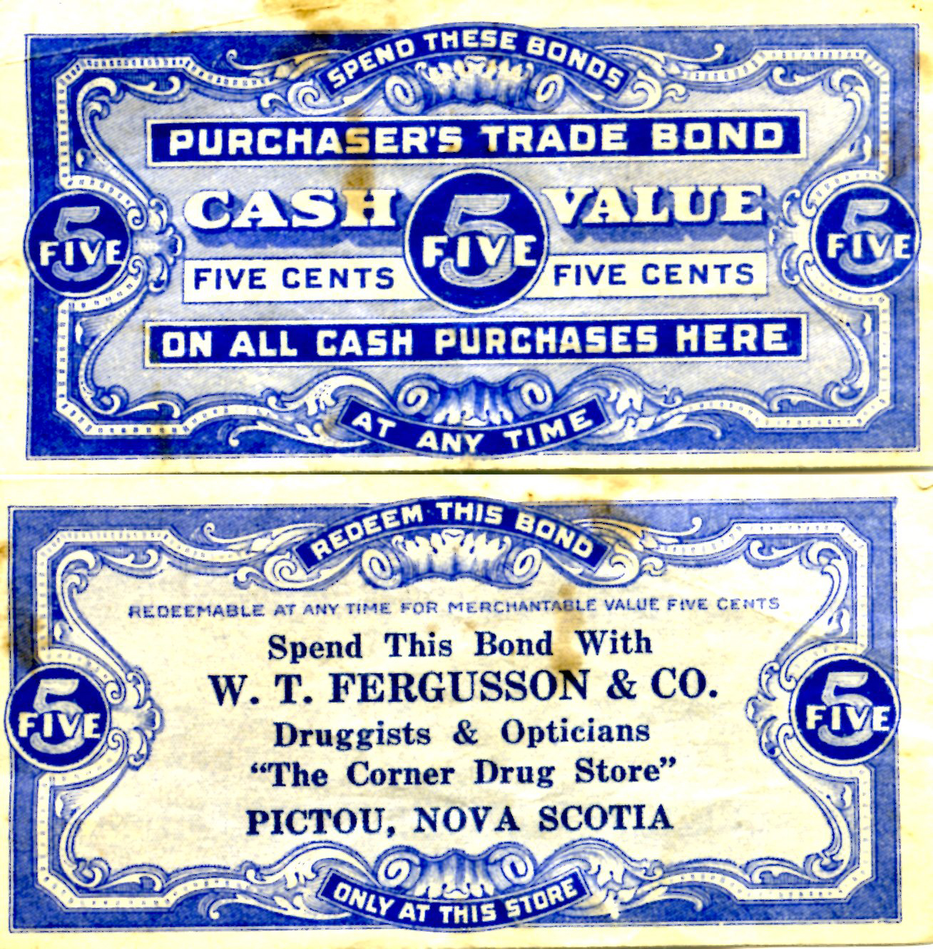 Used for goods at W.T. Fergusson & Co., Pictou, from 1929.