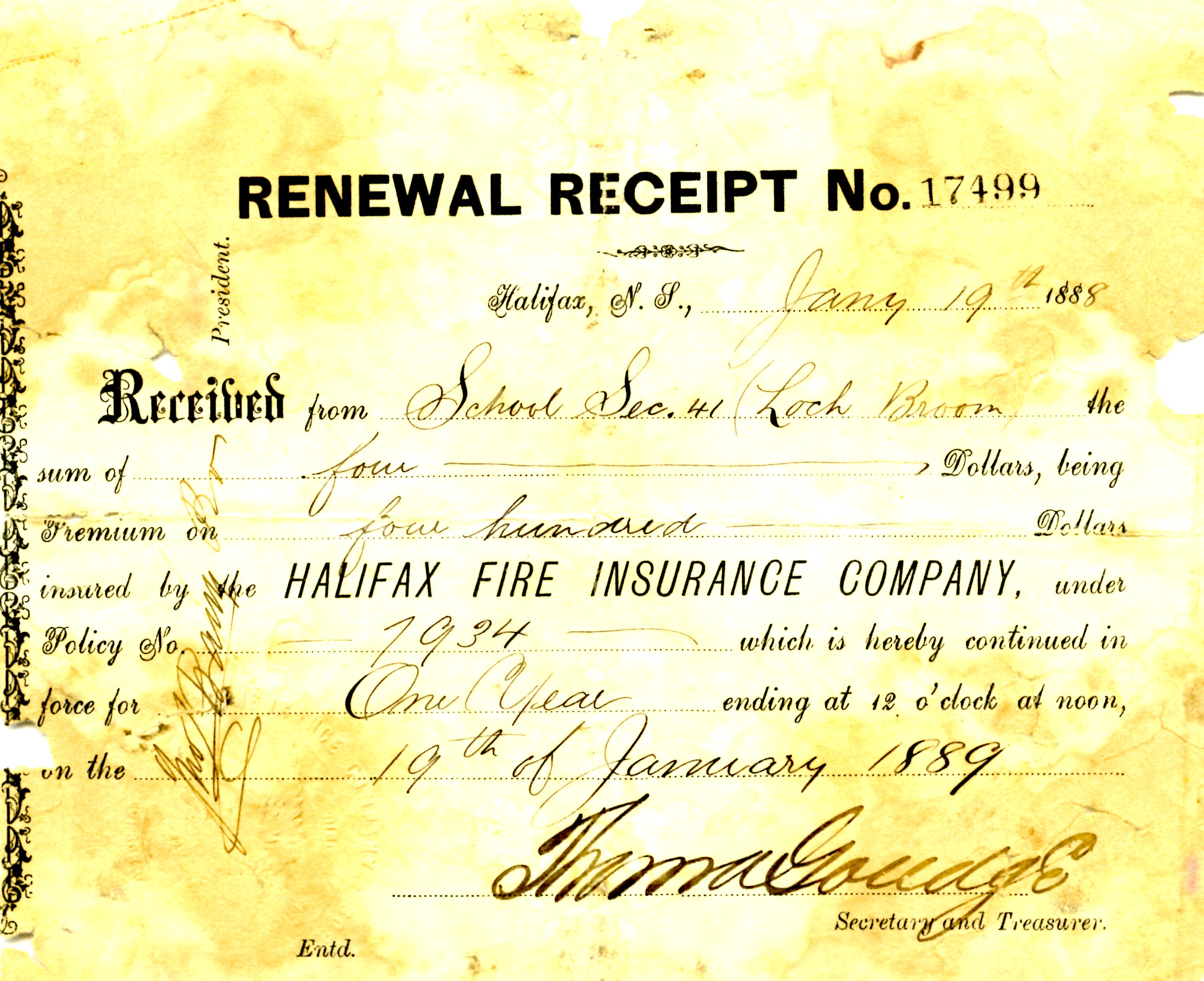 Issued Jan. 19th, 1888 by Thomas Goudge (?) for the Halifax Fire Insurance Company