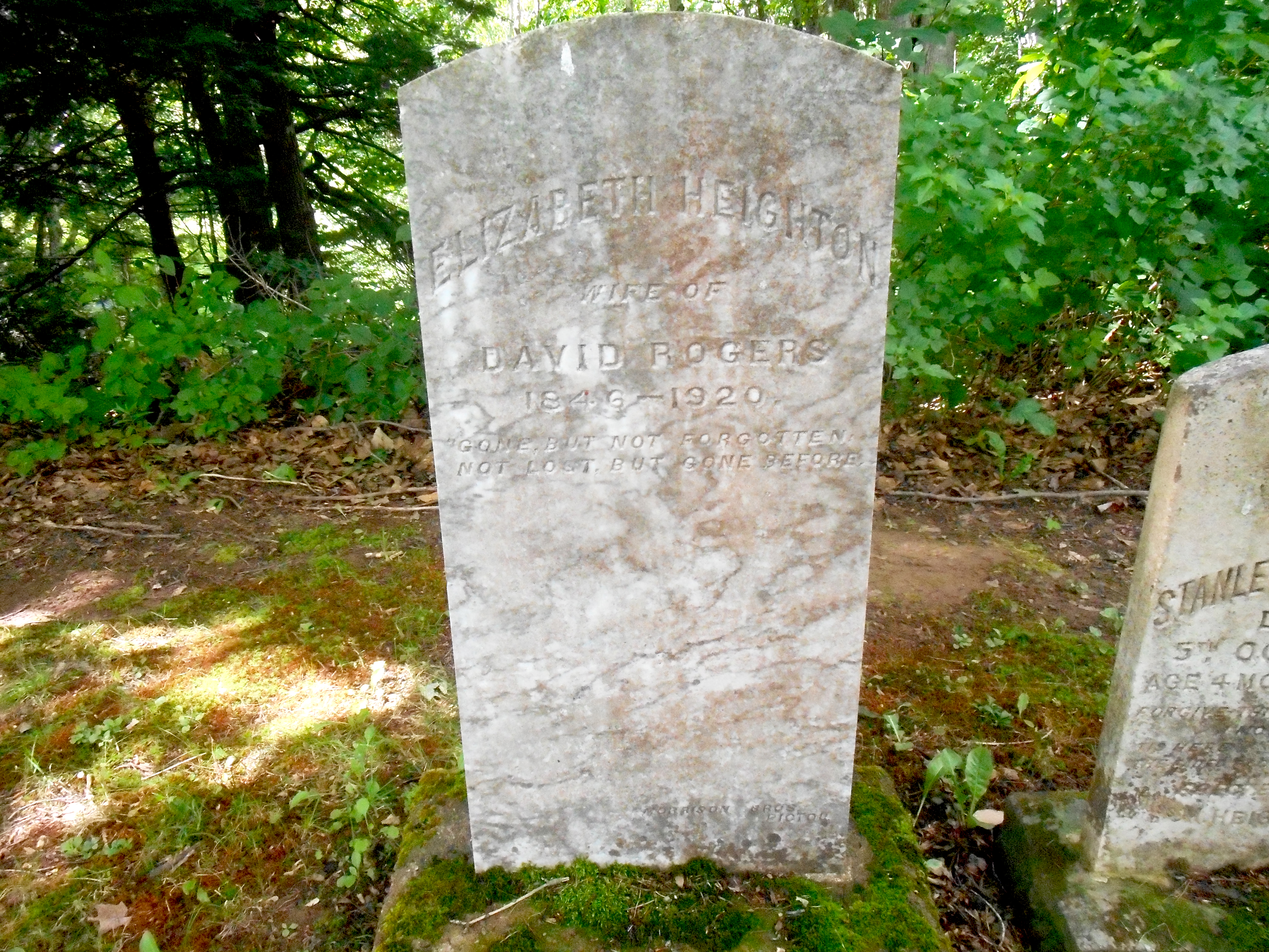"Elizabeth Heighton, wife of David Rogers. 1846-1920. Gone but not forgotten, not lost but gone before."