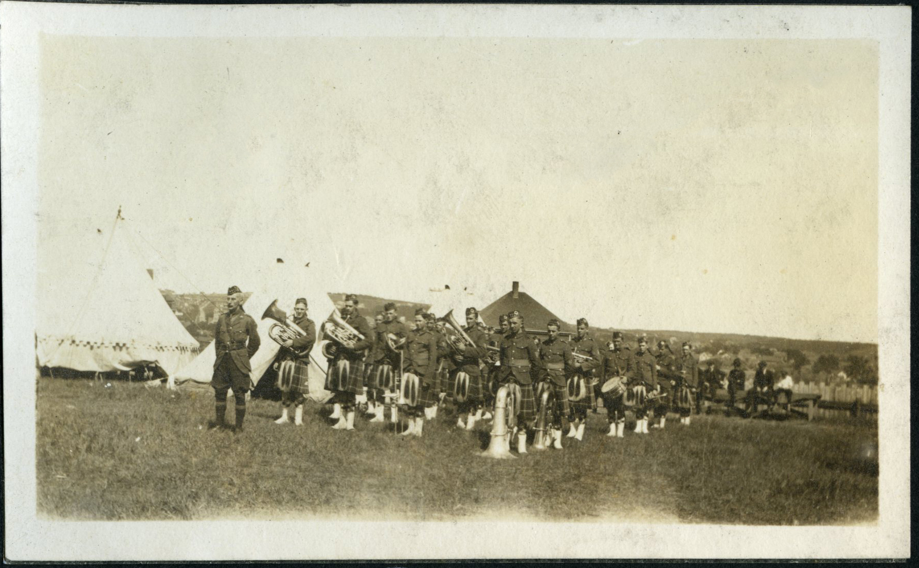 Photo taken in June 1921, "Pictou Highlanders, YMCA A. Grounds, June 1921, 'Brass band'."
