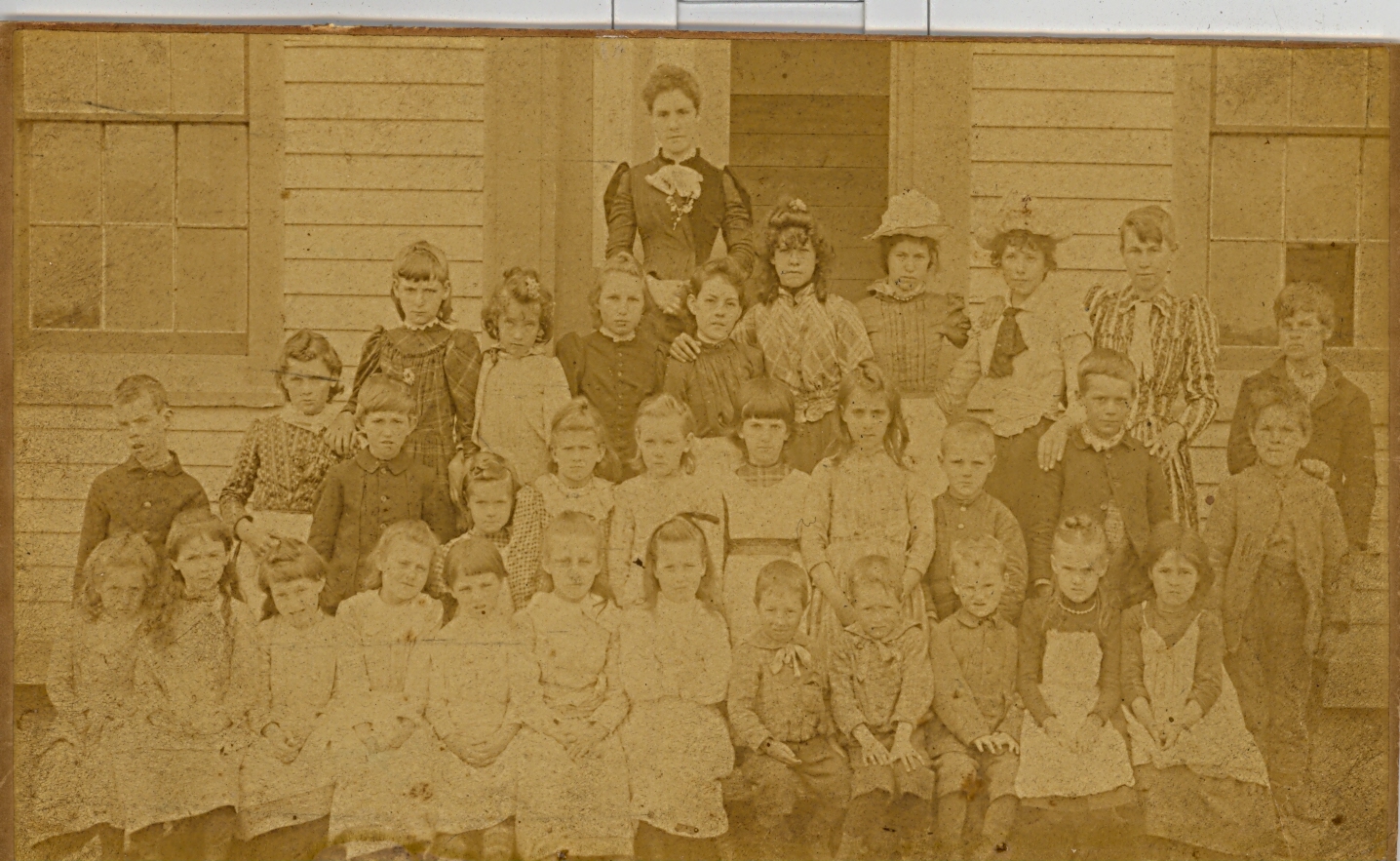 The children of Plainfield School, with their teacher, Alice Creighton, in 1892.