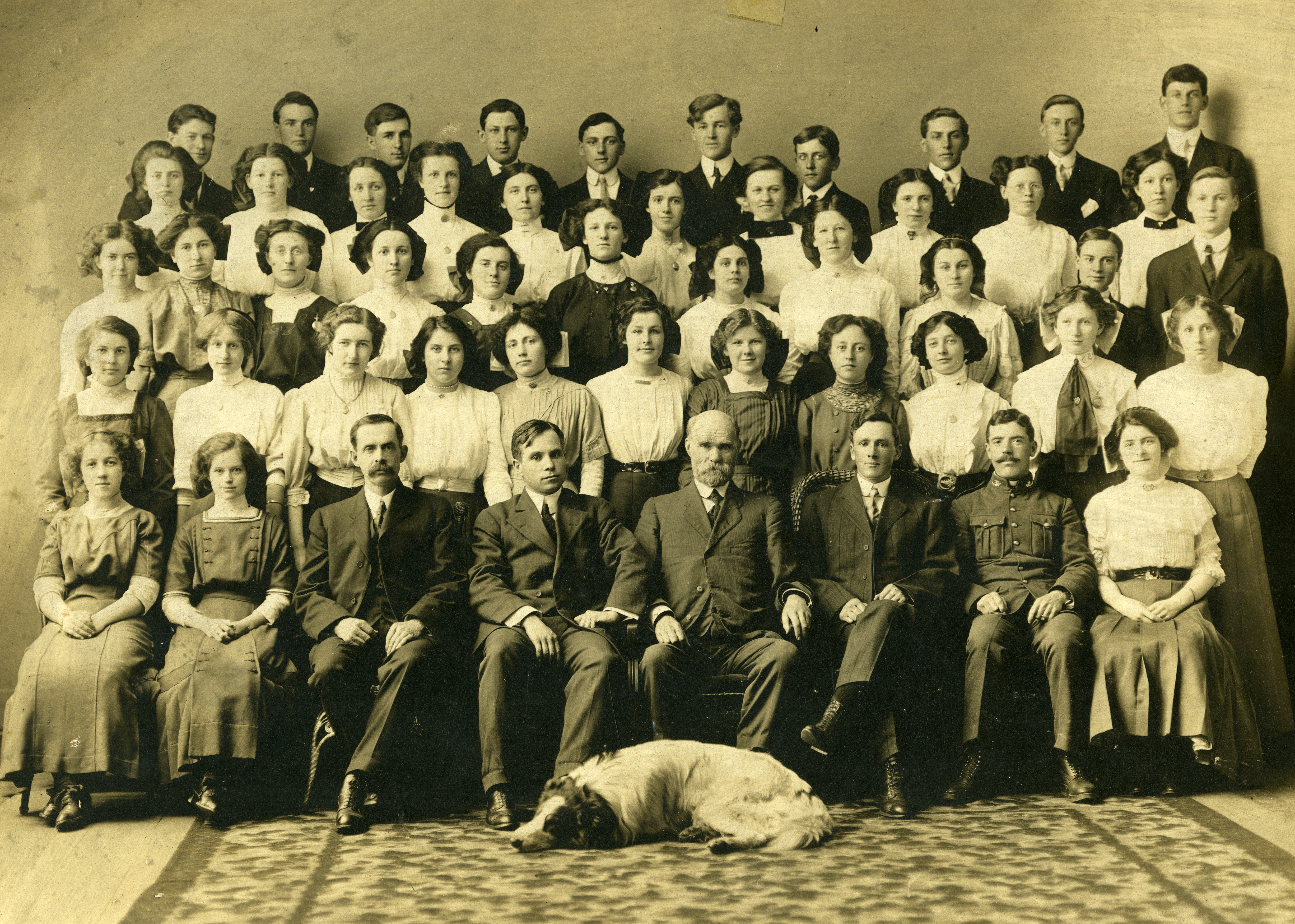 | Tags: | Pictou Academy, Pictou town, c 1910, Jean Atkins, Christena McKay, Dolena McLeod, Hazel MacKay, Principal McLellan, W P Fraser, H F Munroe, J E McVicor, Robert MacLellan, student, class, dog, teachers |