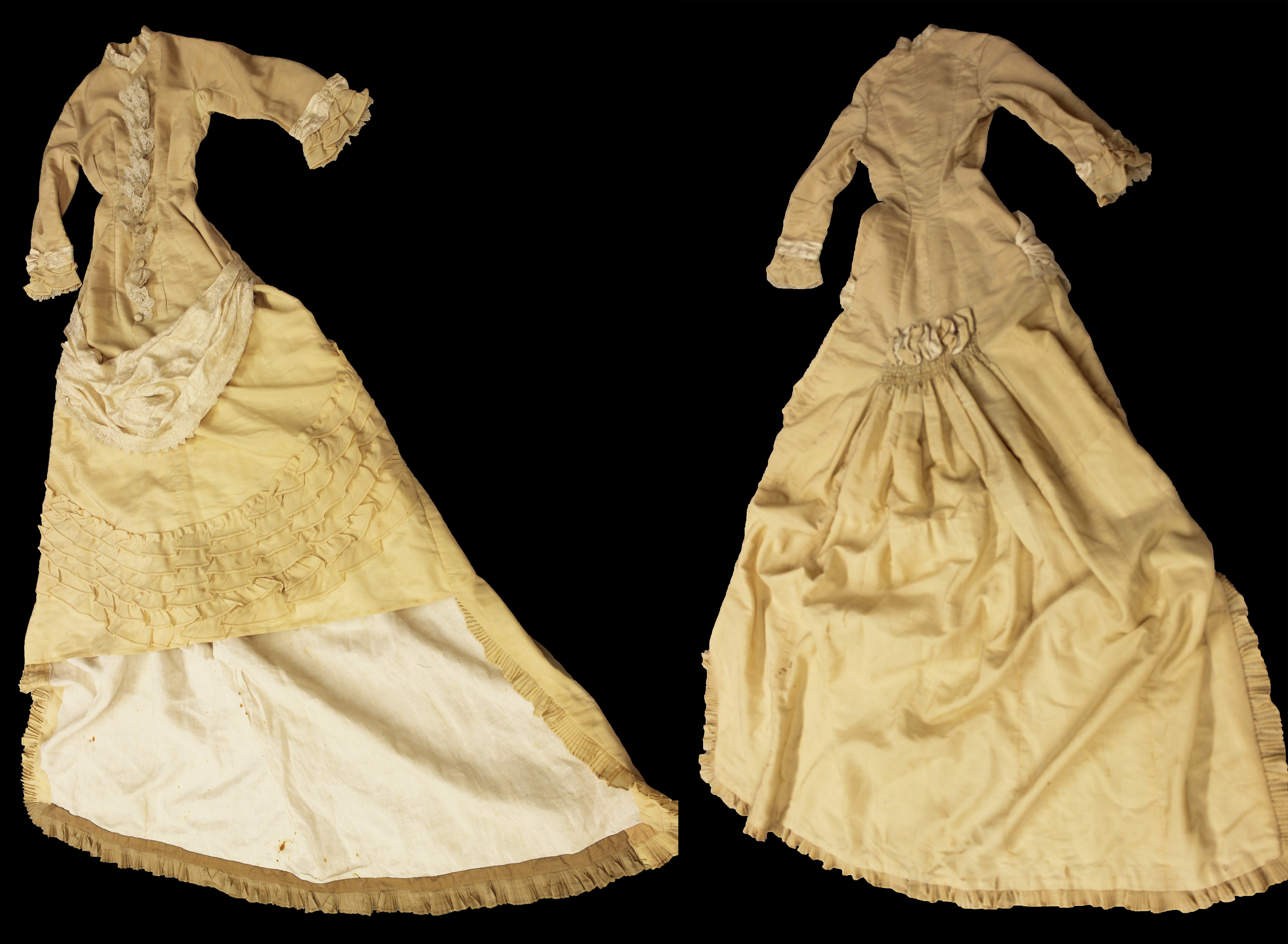 Wedding dress worn by Annie A MacKenzie when she married John A Matheson, of Halifax on 7 October 1880.