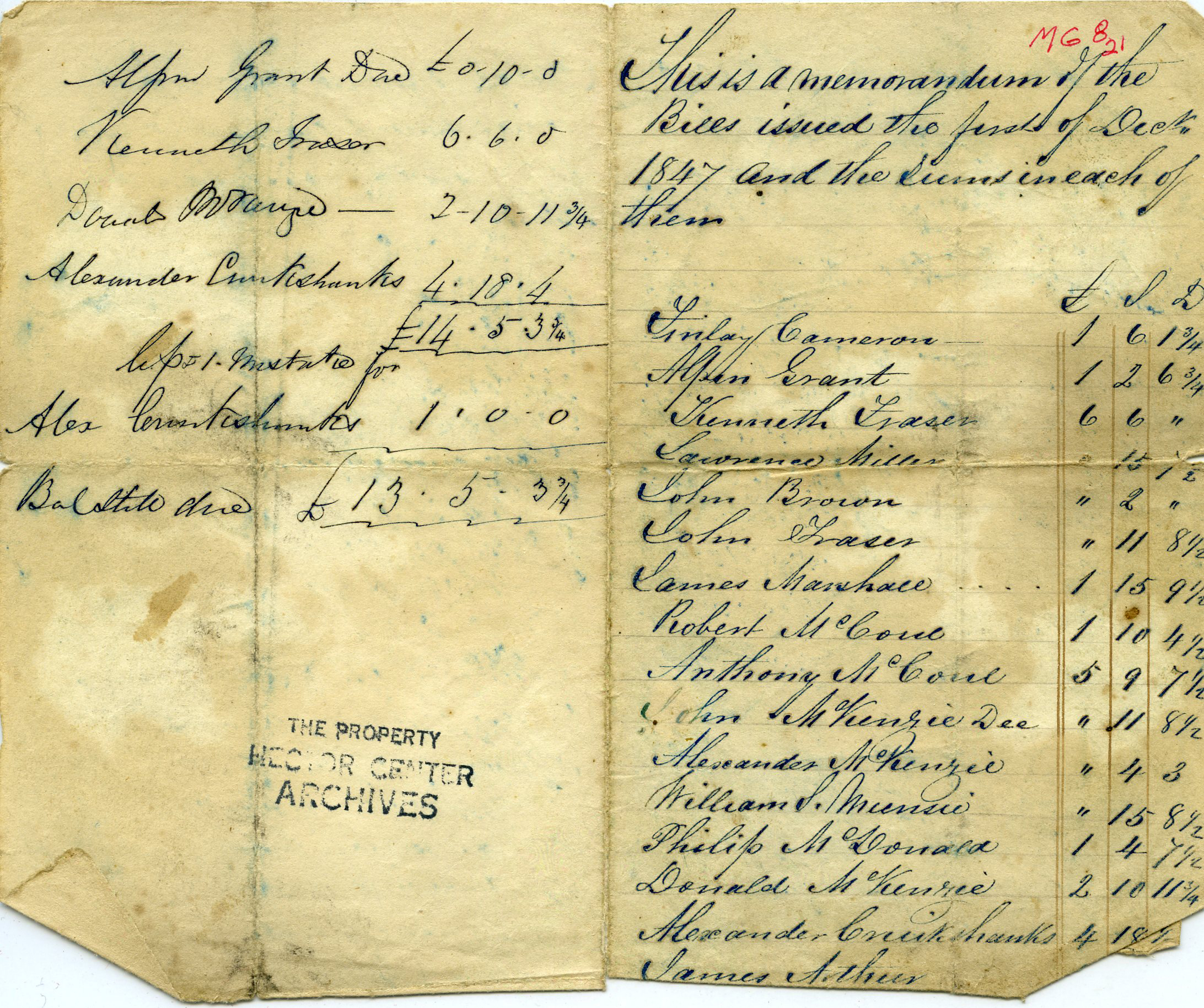 This is a memorandum of the Bills issued to the first of Dec, 1847 and the sums in each of them.