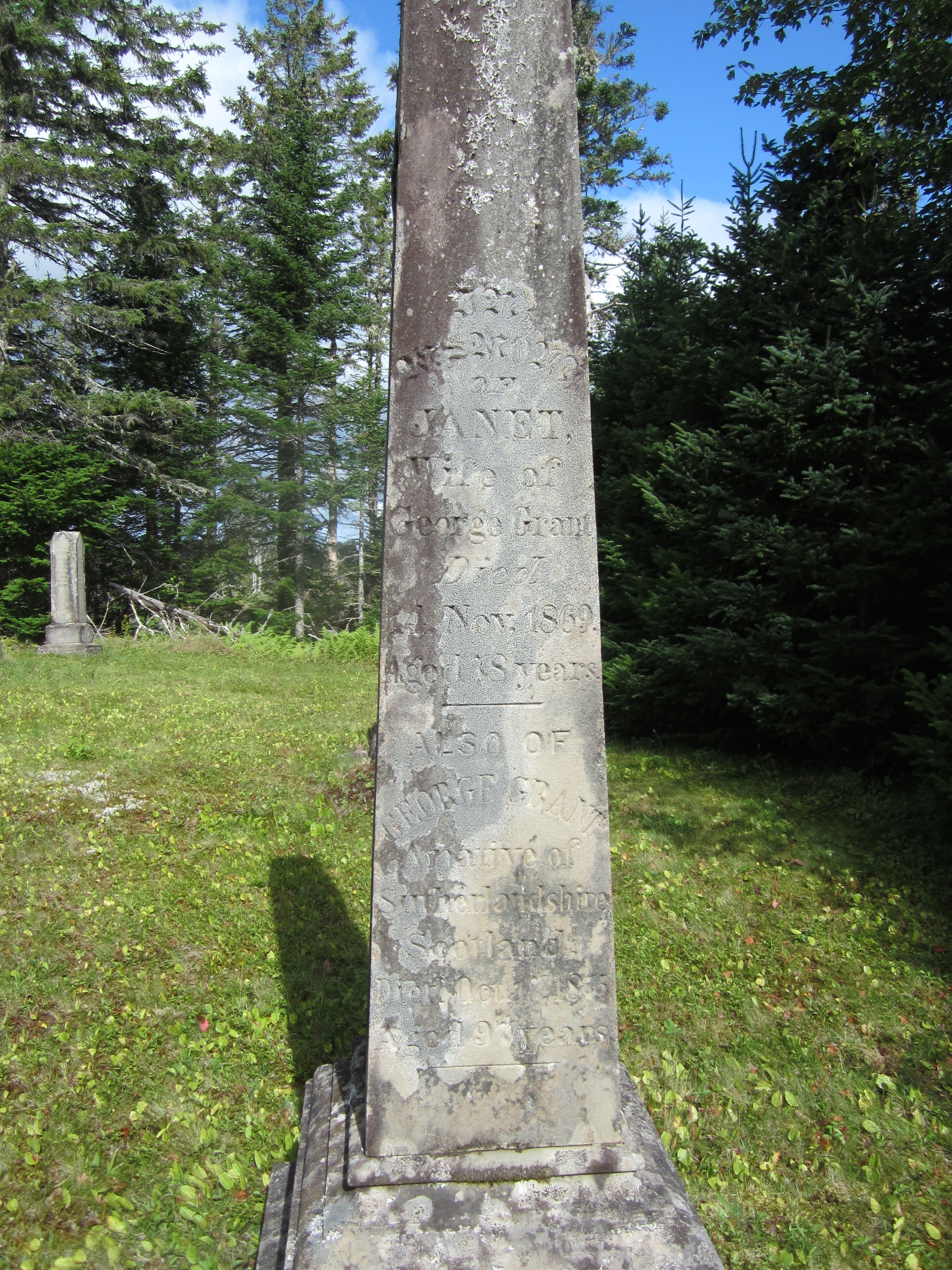 | Tags: | Janet Grant, George Grant, Dalhousie Mountain Cemetery, Sutherlandshire Scotland |