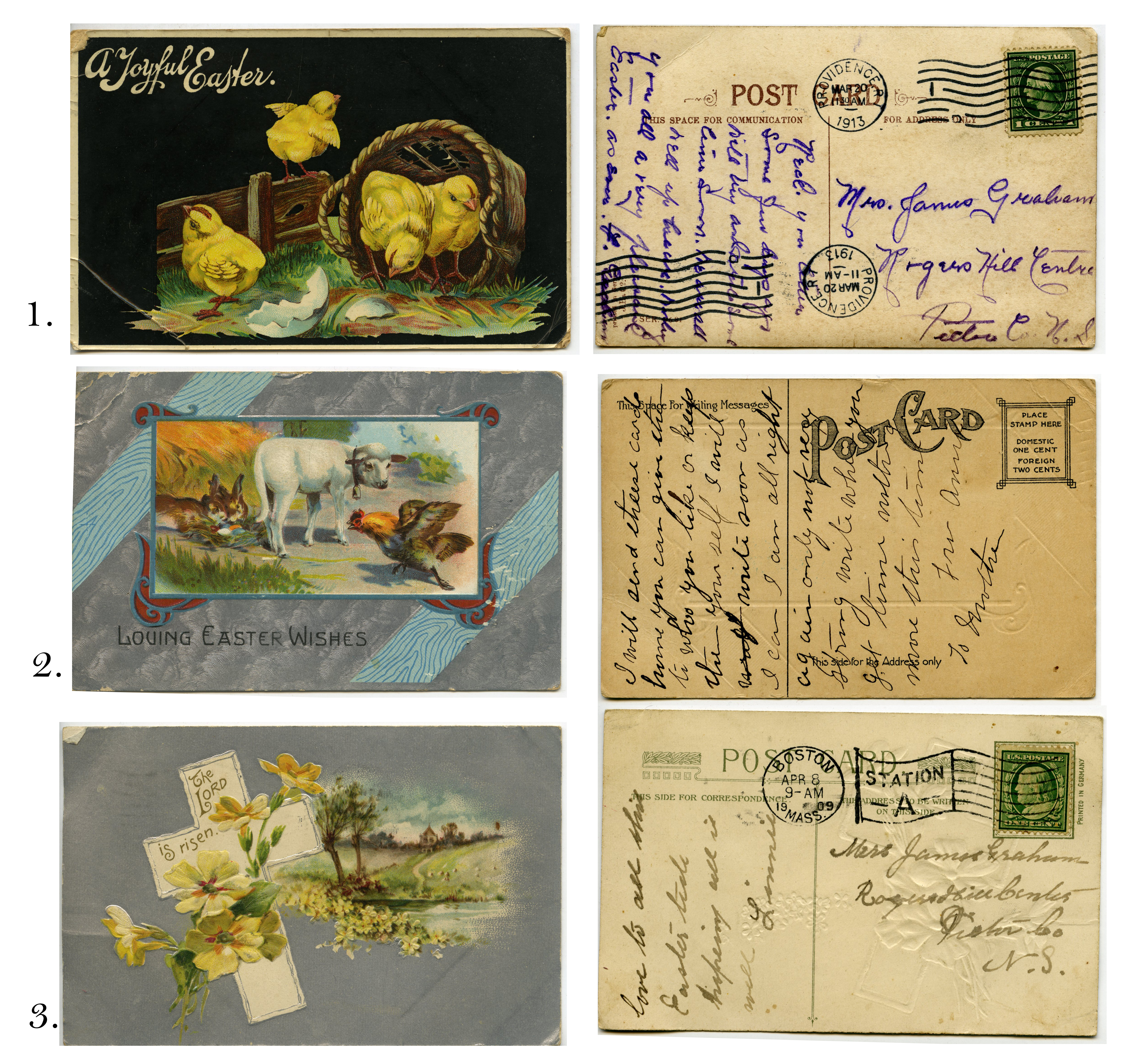 Read your letter some fun days ago will try and write some lines soon. We are all well up here --- you all a very pleasant Easter. As ever F. Graham