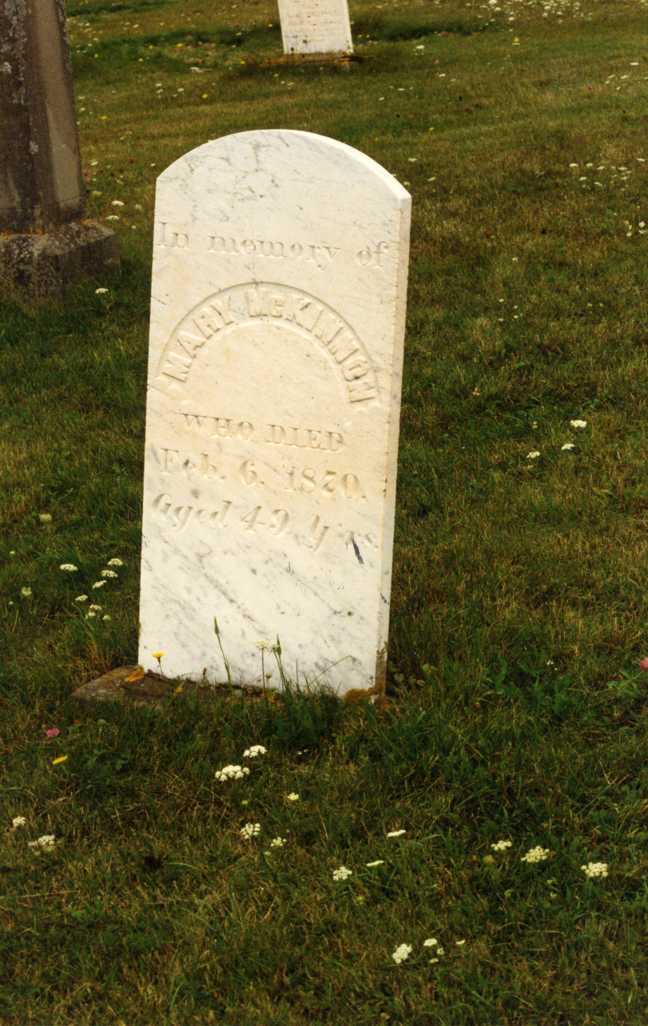 Inscribed on Stone: In Memory of Mary McKinnon who died Feb. 6. 1820 Aged 49 Yrs.