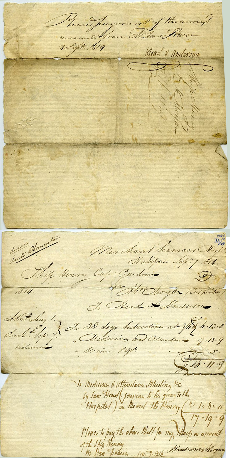 Please to pay the above bill for my illness on account of the Ship Henry. Mr Danl Fraser, Sept 7.1814