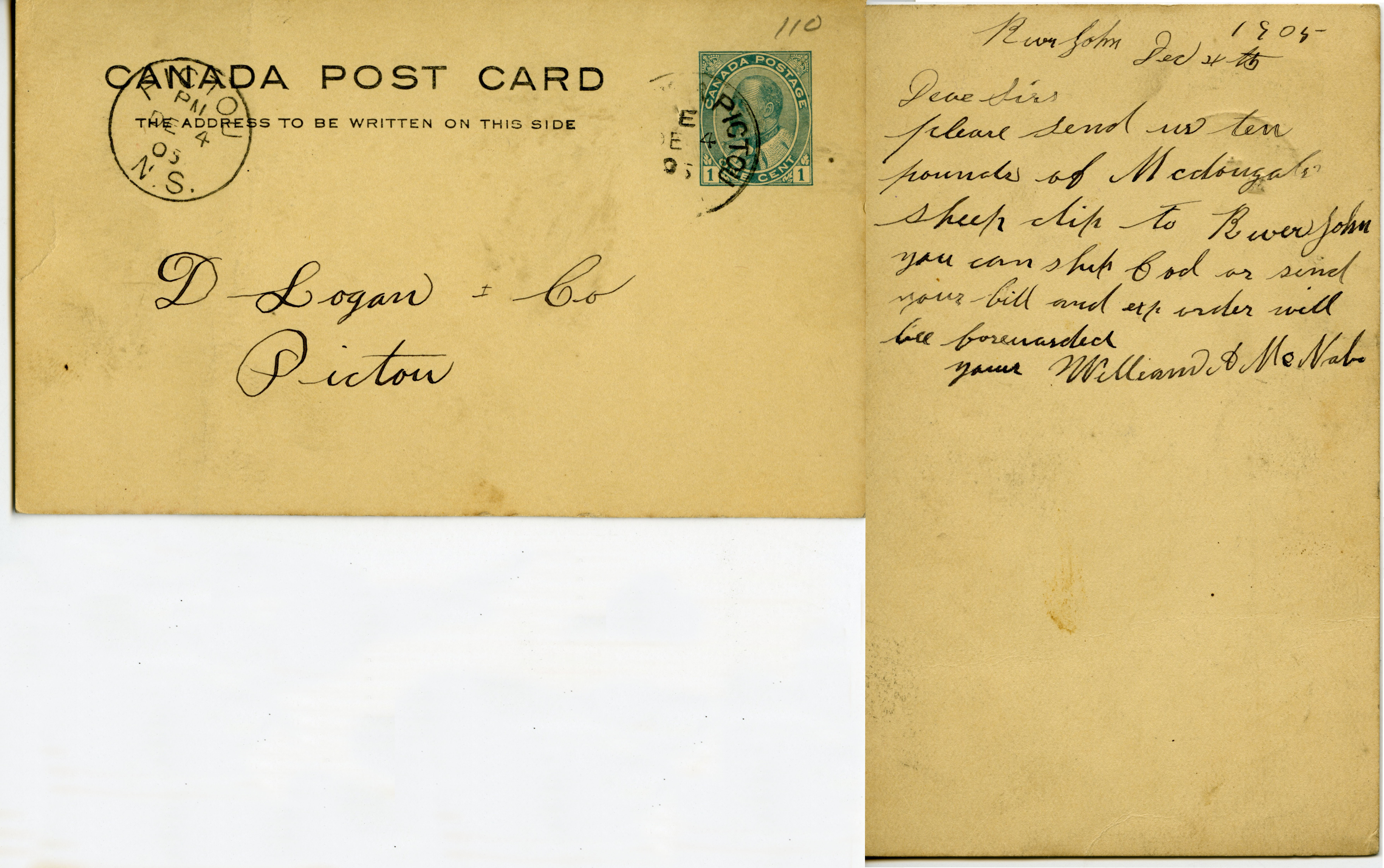 | Tags: | MacNab, Mc Nabb, Mc Nab, penny postcard, merchant, general store, importer, post card, William McNab, grocer, Water Street, David Logan |