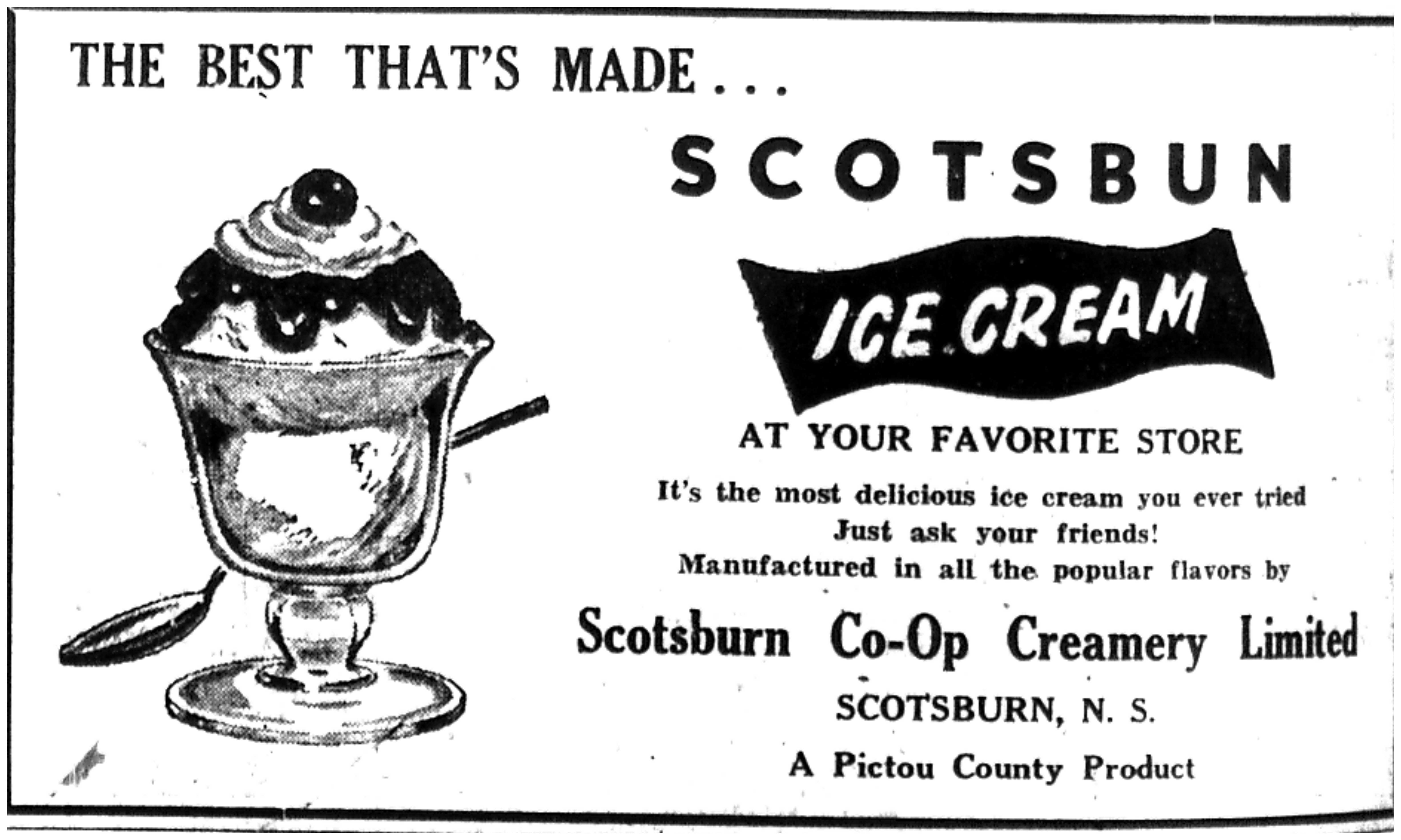 | Tags: | Scotsburn, ice cream, Scotsburn Ice Cream, ad, Pictou Advocate, newspaper, advertisement |