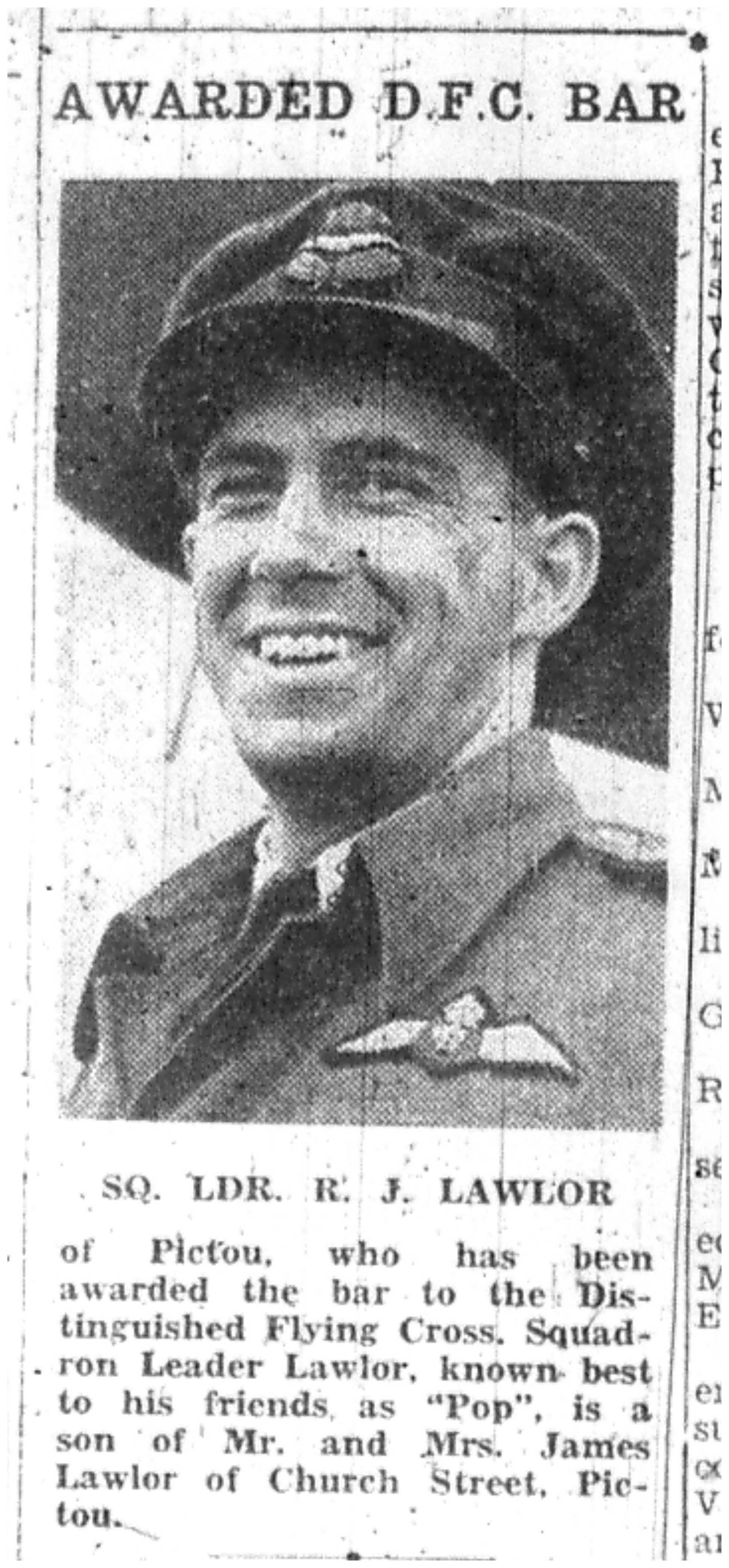 Short blurb about Roy "Pop" Lawlor receiving the title of Distinguished Flying Cross from the Jan. 25, 1945 Pictou Advocate.