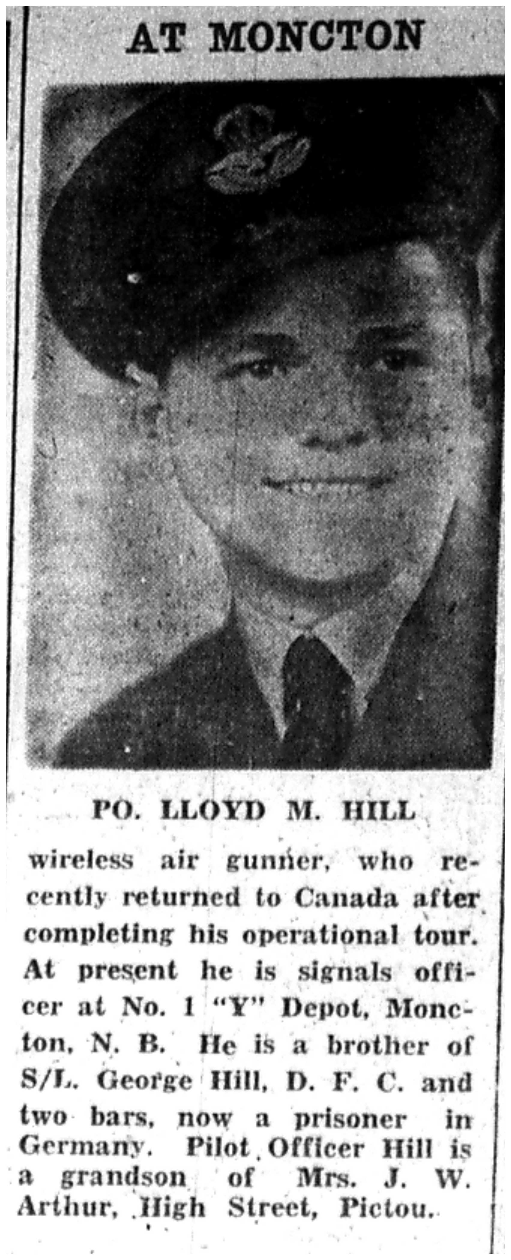 March 22, 1945 Pictou Advocate article about Lloyd M. Hill returning from his operational tour.