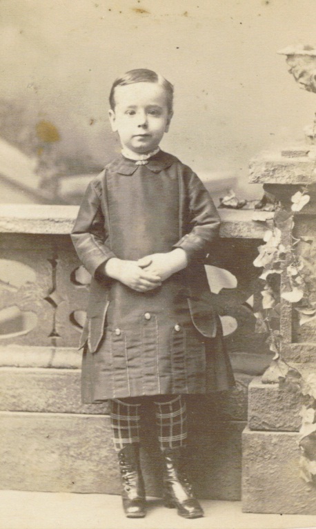 Young boy about five or six? posing for photograph.