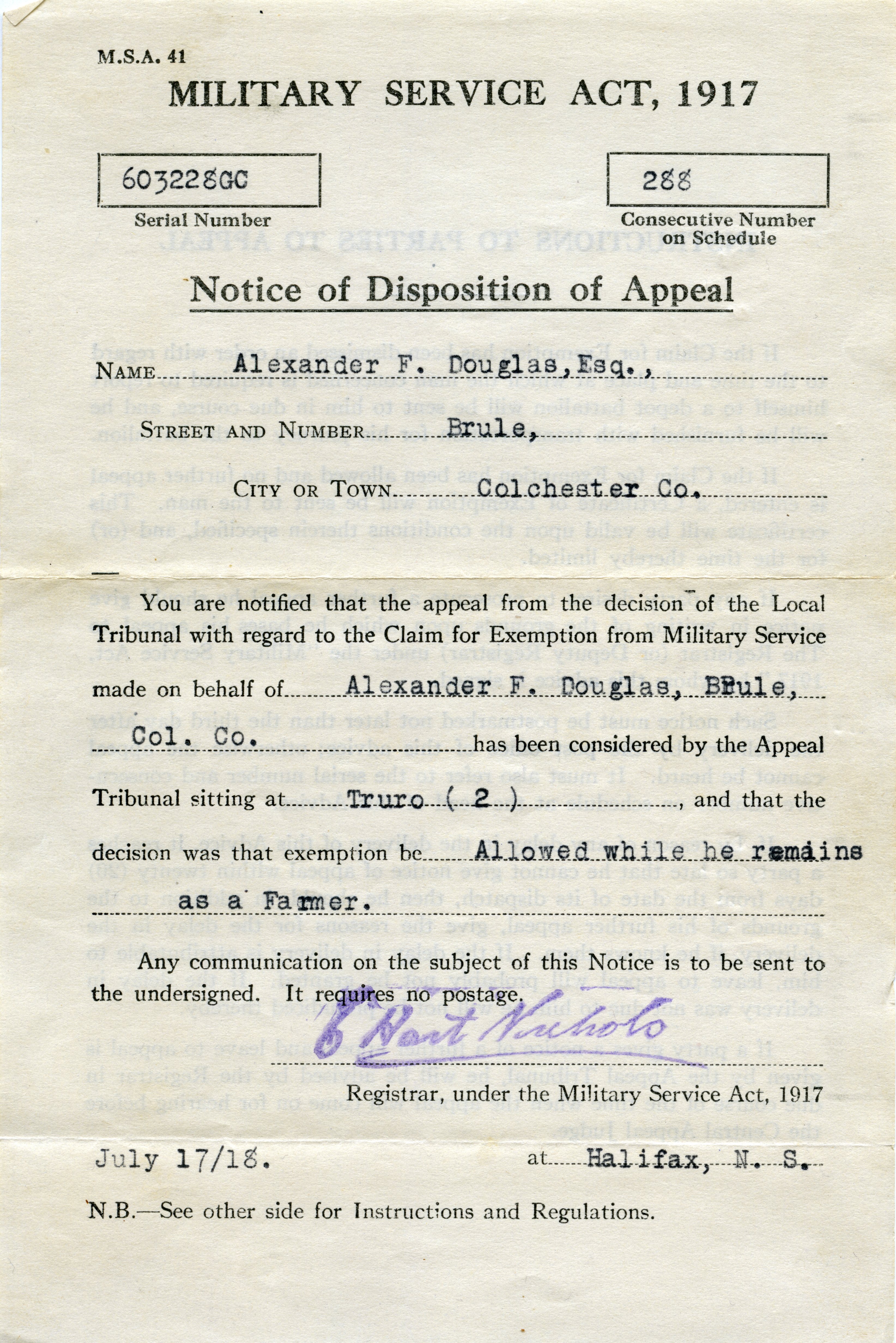 | Tags: | Tatamagouche, Colchester, Colchester County, Douglass, military, Serial No. 603228 |