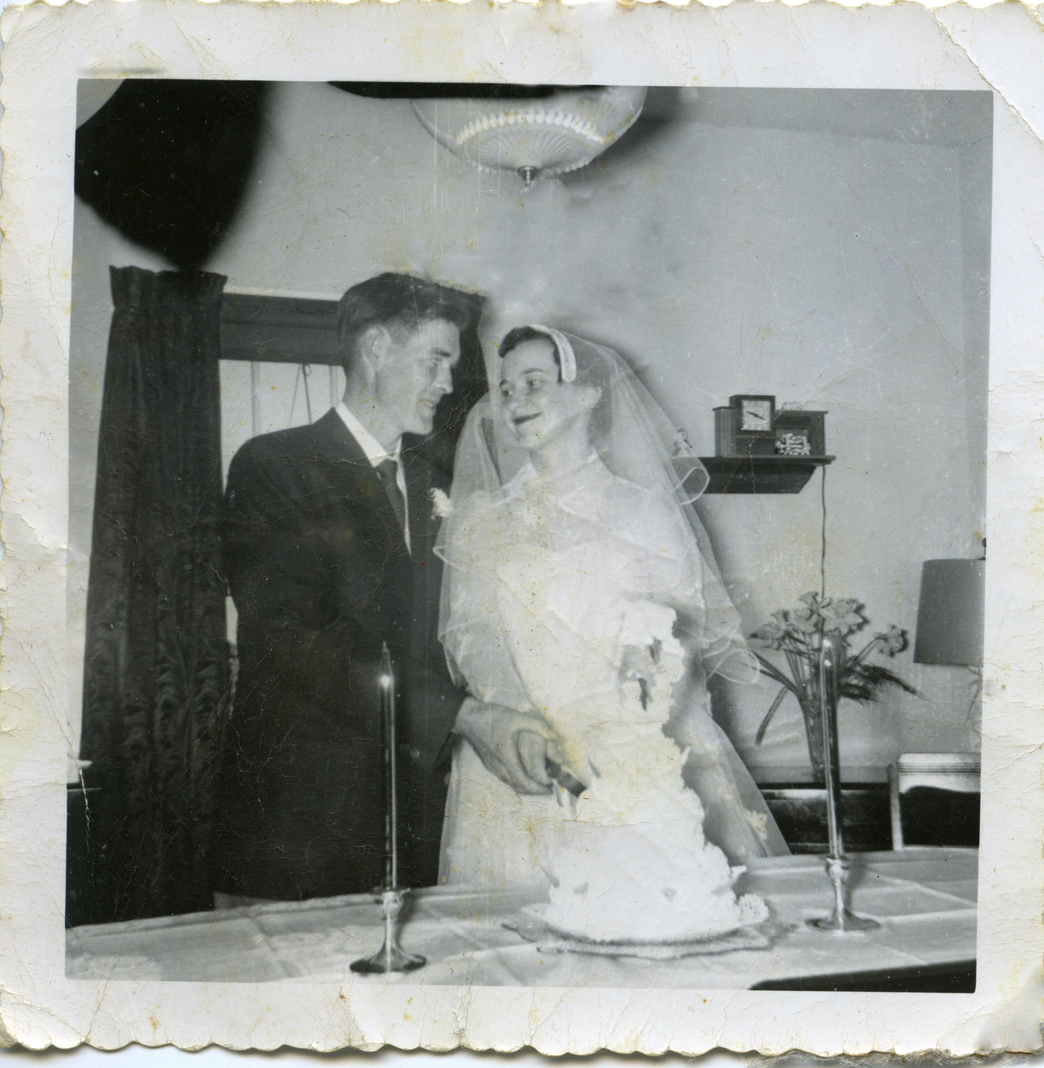 Coral Dewar, daughter of A.W. Dewar and Mary Isabel MacGregor of Broadway, and Herman Greene, son of John Greene and Jessie McLaren of Greens Brook, NS on their wedding day in the early 1950s.