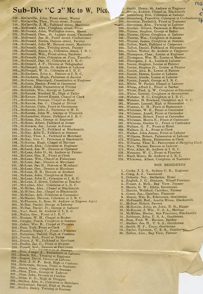 | Tags: | McCarville, McDonald, McDougall, McEachern, McInnis, McIvor, McKenzie, McKay, McLeod, McLean, McMillian, McMaster, McRea, Noonan, Oungay, Oakes, Pass, Perrin, Priest, Patterson, Powell, Ross, Roach, Rodgers, Reid, Seers, stalker, sutherland, smith, stramburg, Sinclair, Talbot, Thompson, Veniot, Webster, Whitman, Williams, Watt, Whiteway |