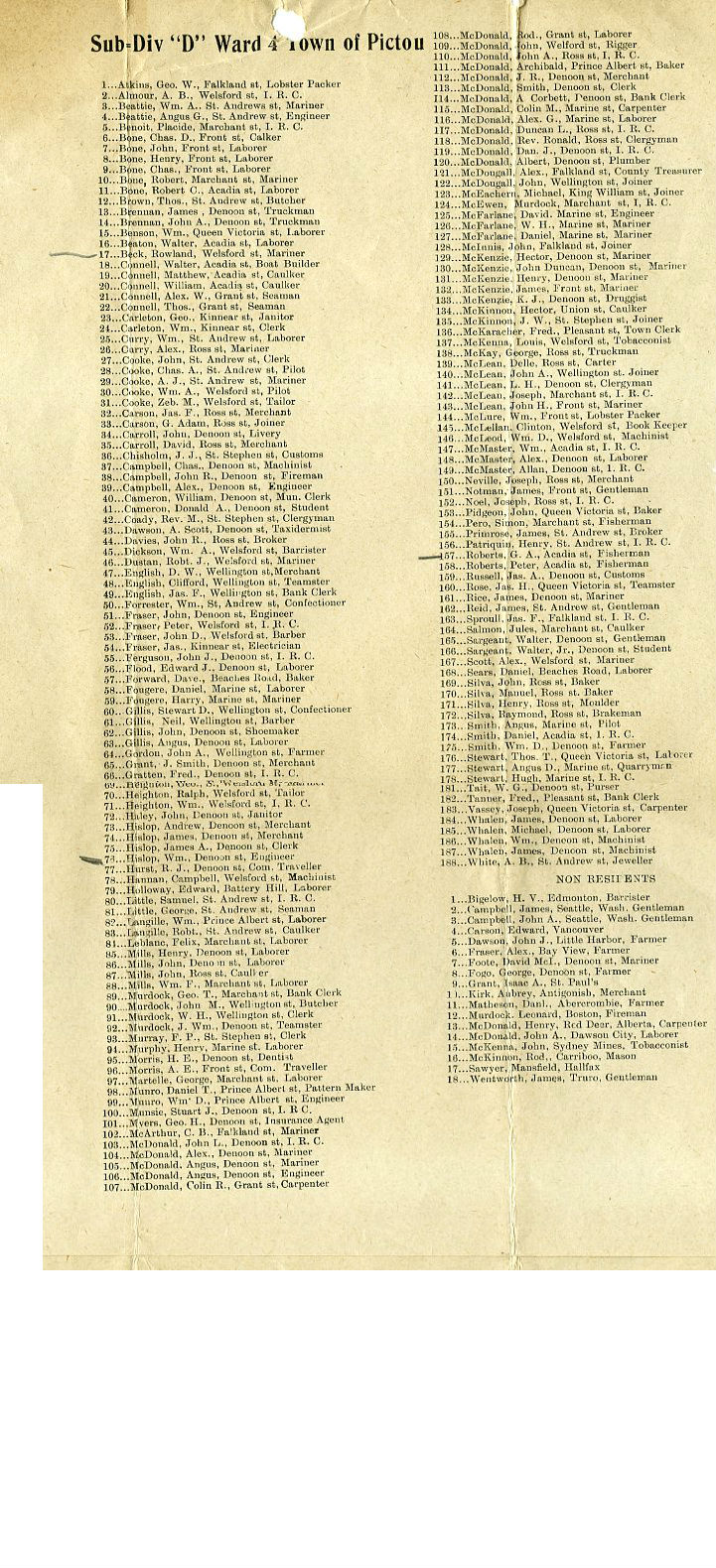 | Tags: | Atkins, almour, beattie, benoit, Bone, Connell, curry, campbell, cooke, cameron, Dawson, English, Fraser, Ferguson, Gillis, Gilchrist, Heighton, haley, hislop, Little, Mills, Murdock, Morris, McDonald, Tanner, Vassey, White, Whalen, Tait, Neville, Scott, Sears, Smith, Pidgeon, Pero, Roberts, Reid |