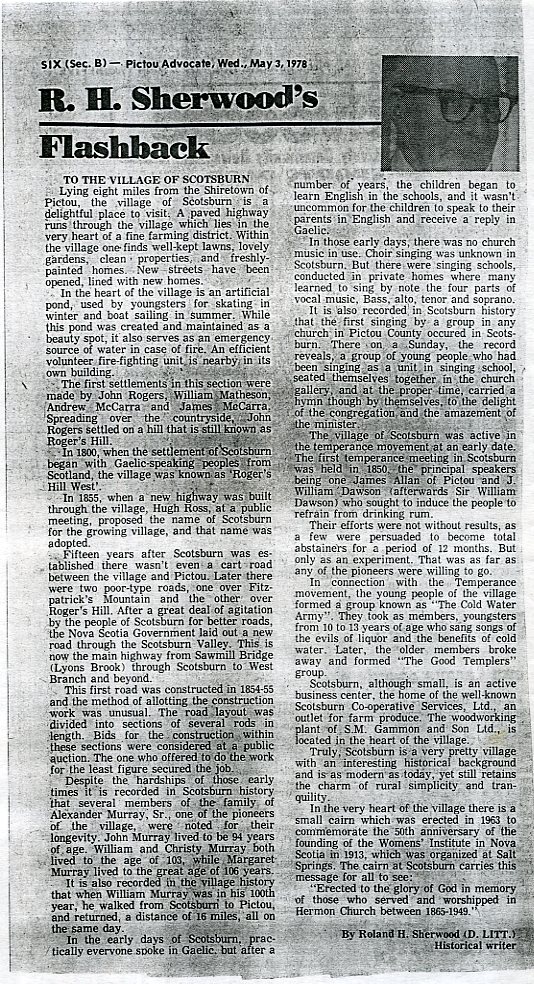 | Tags: | Roland Sherwood, Scotsburn, Rodgers hill, Lyons brook, Andrew McCarra, James McCarra, Alexander Murry sr., John Murray, William Murray, Christy Murray, James Alan, William Dawson, Pictou |