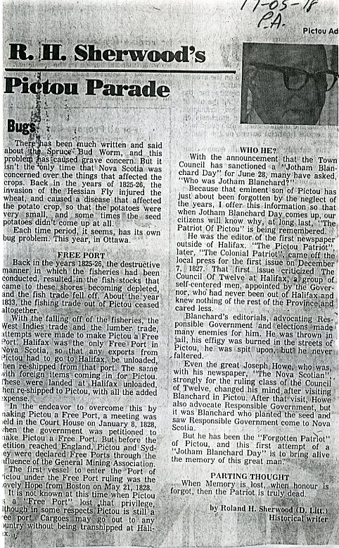 | Tags: | Roland Sherwood, Pictou, Jotham Blanchard, The Pictou Patriot, The Colonial Patriot, Joseph Howe |