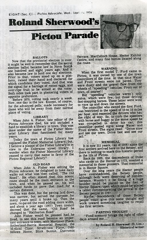 | Tags: | Roland Sherwood, John A Fisher, Sutherland-harris, McCulloch House, Betsey, Pictou |