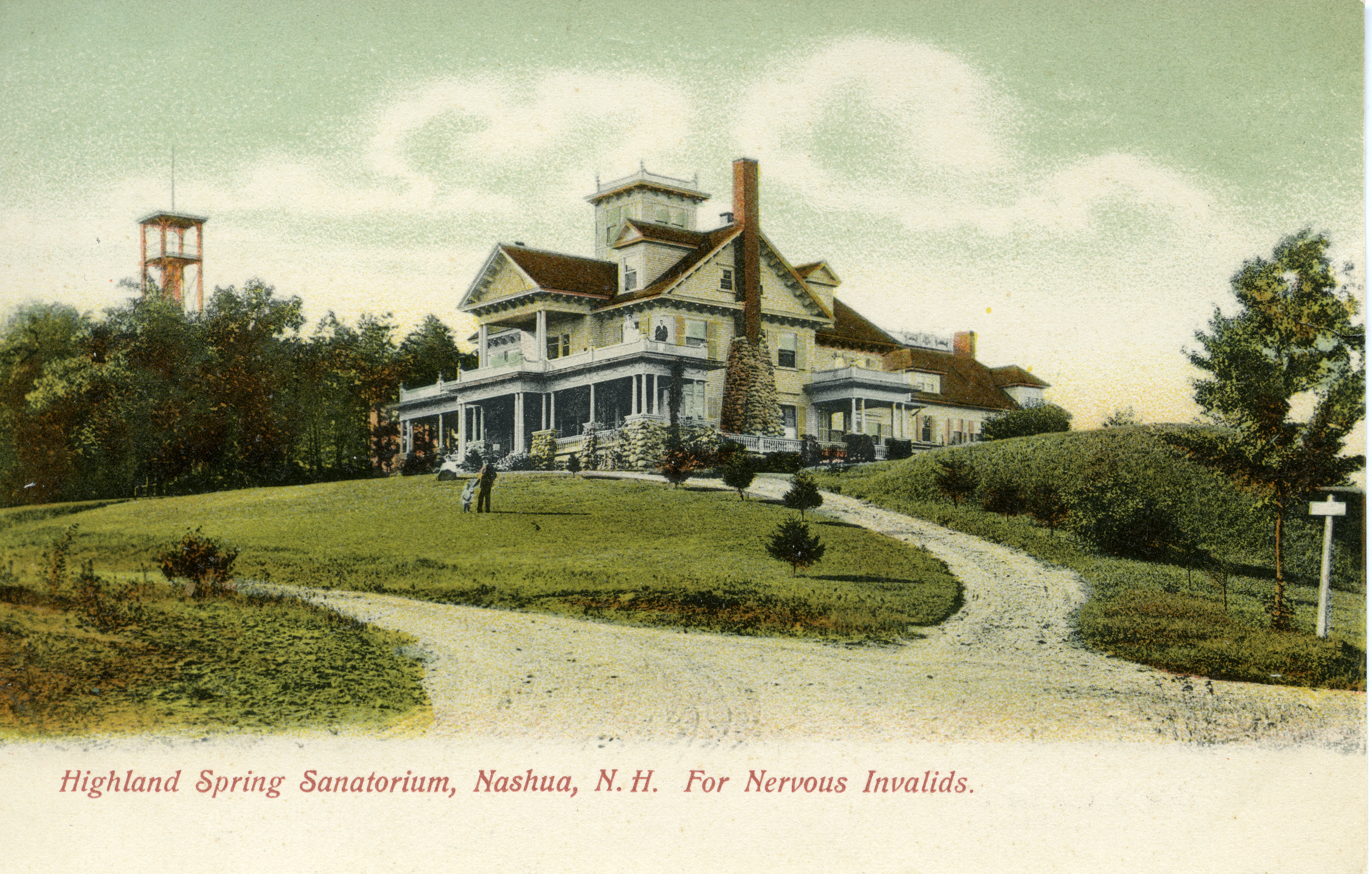 Postcard of Highland Spring Sanatorium in Nashua, New Hampshire. A E Brownrigg, M.D., Supt.