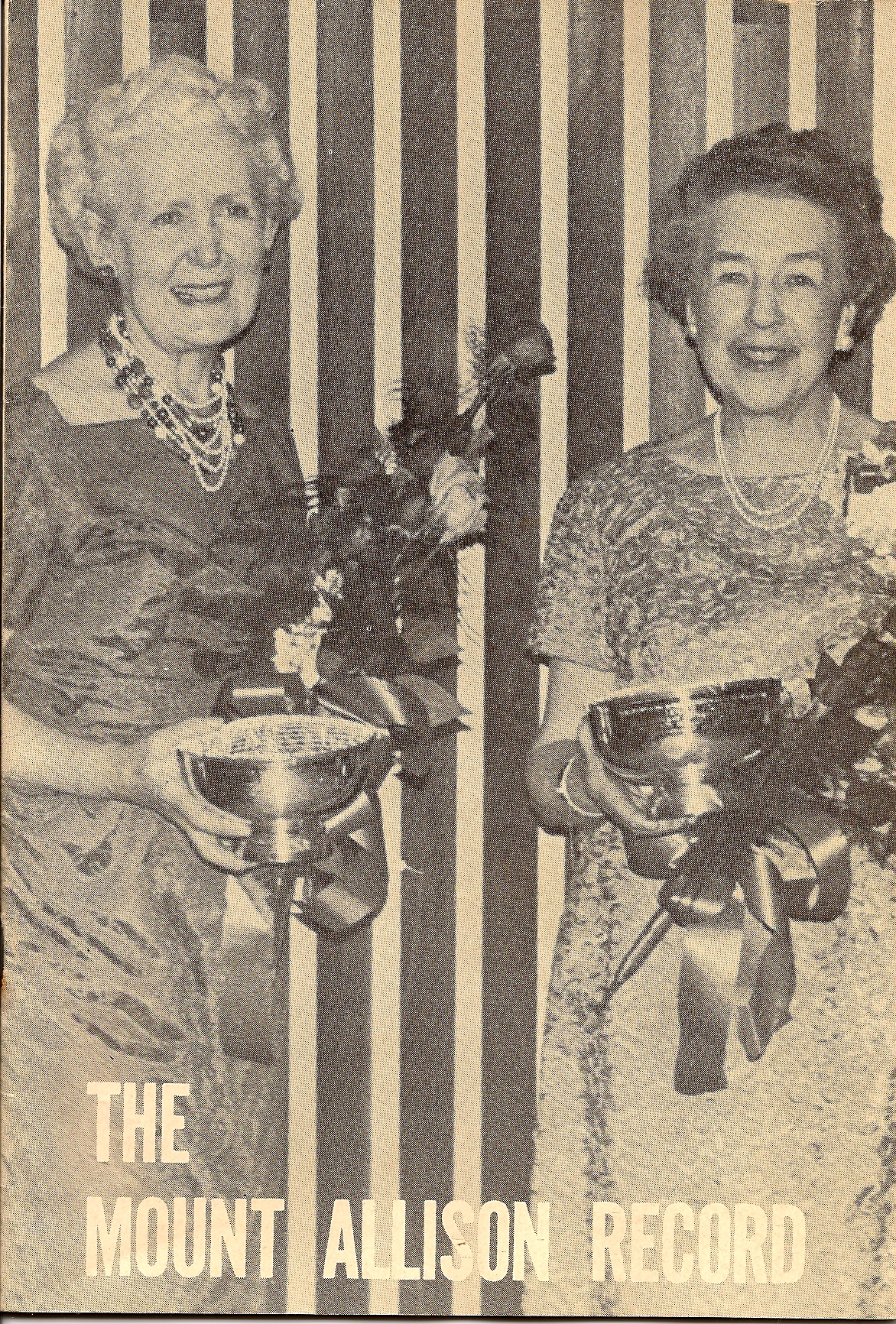 The Home Economics Society of Mount Allison University honoured Professor Cavanagh (left) and Dr. Doris Runciman who for many years taught in the faculty of the Massey Treble School of Home Economics.