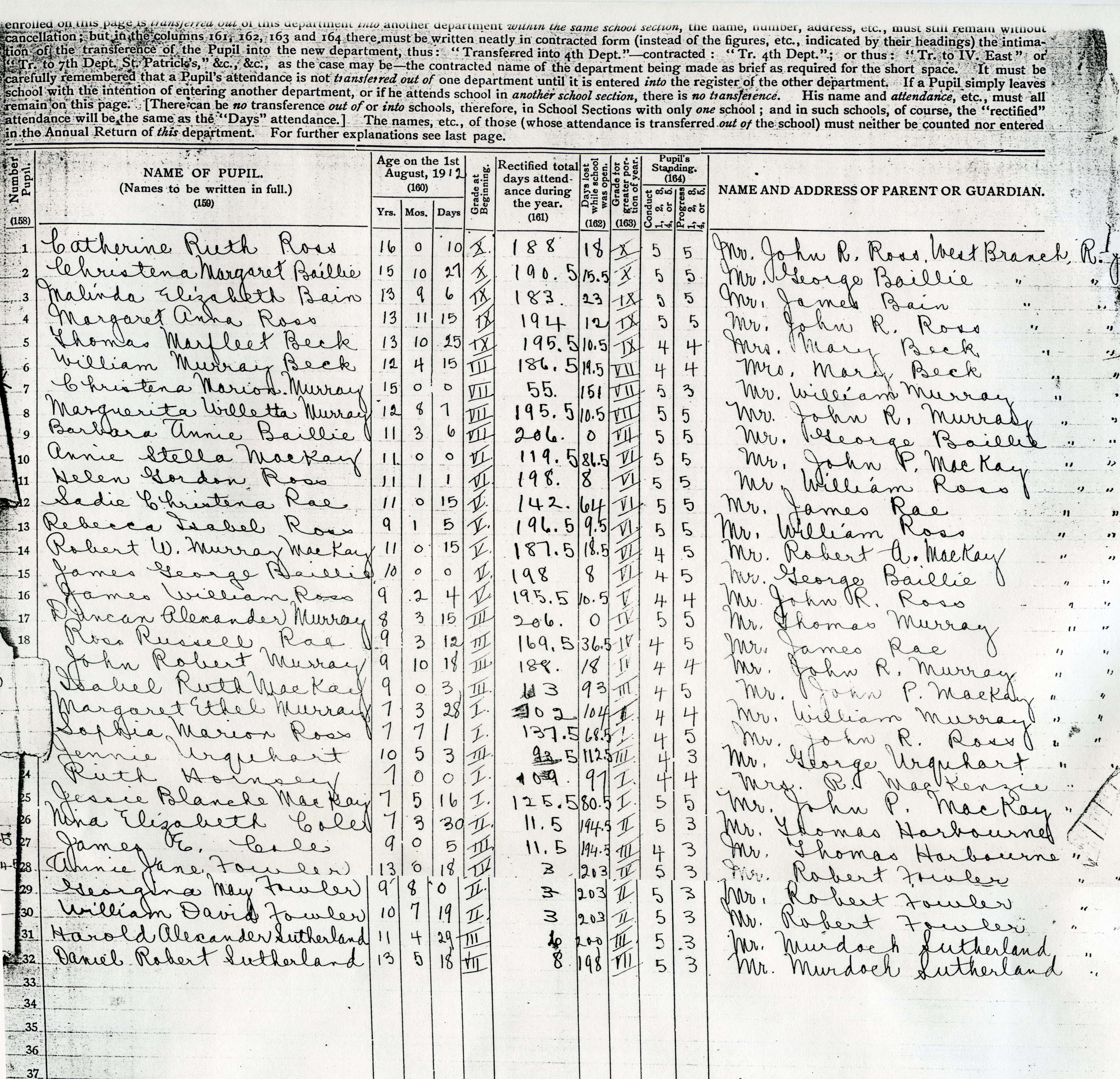 Pupils attending West Branch School and the name and address (West Branch, River John unless otherwise stated) of their parent or guardian