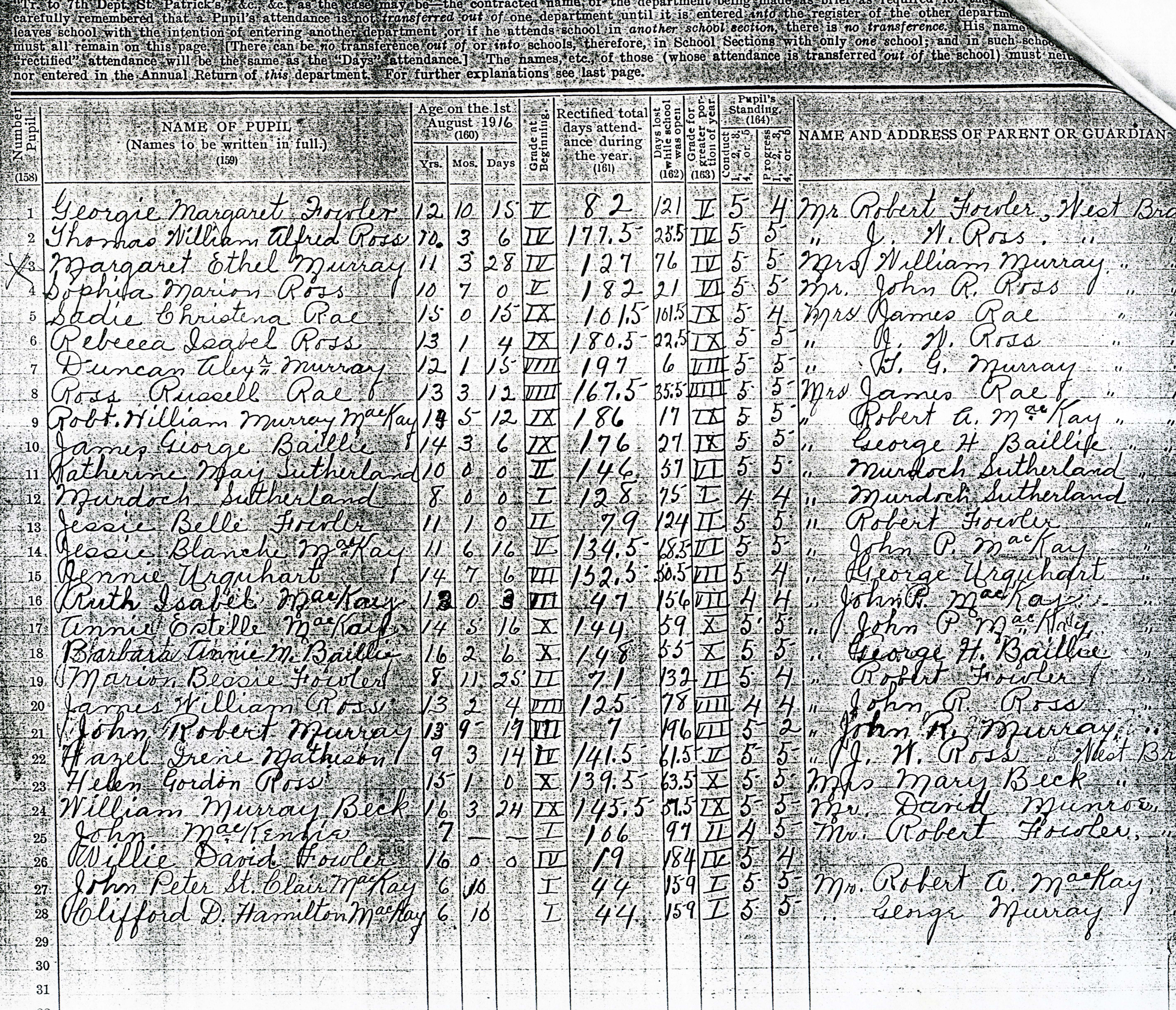 School Register, West Branch, River John, 1917